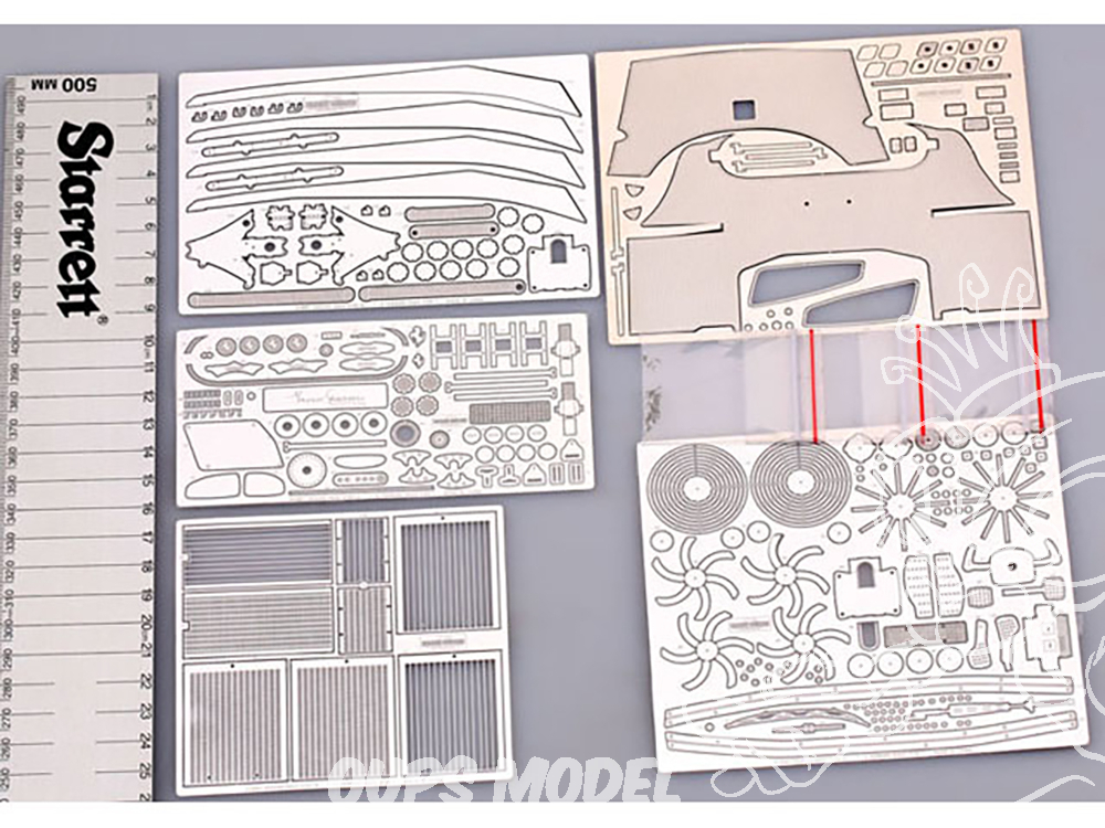 Kit d'amélioration voiture Ferrari Enzo pour kit Tamiya. Comprends des pièces en photodécoupe et en métal.