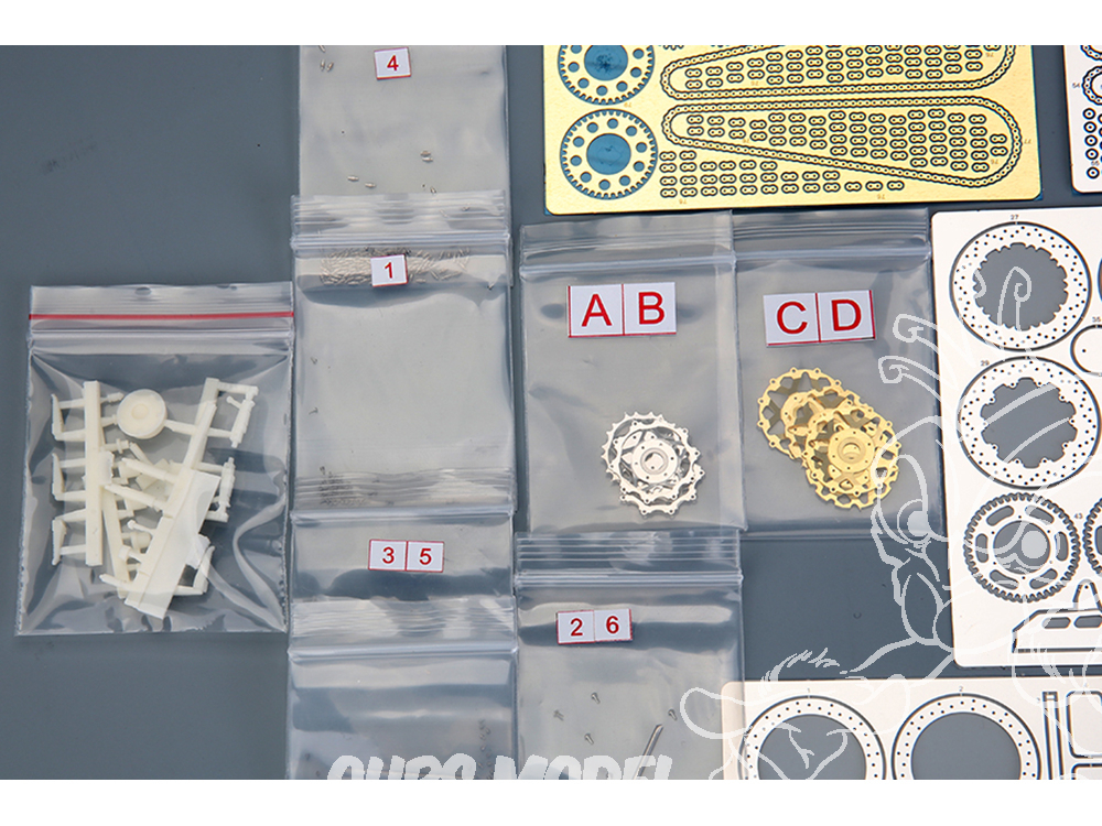 Le set inclus des pièces en résine, photodécoupe, pièces métal et décalcomanies.