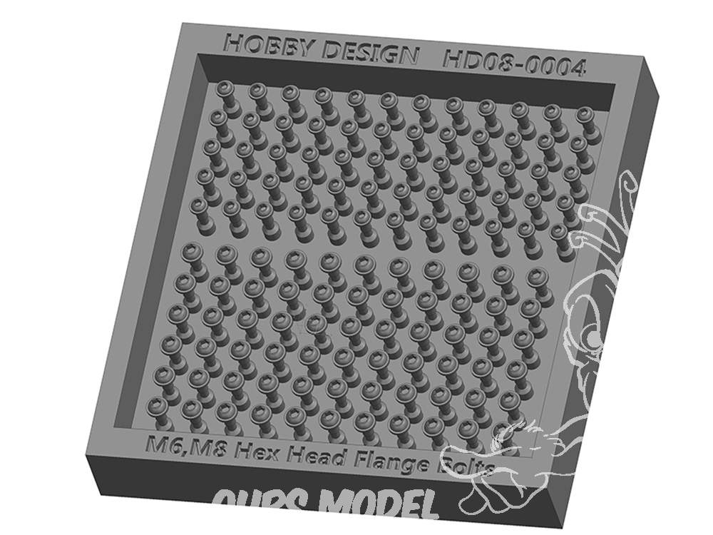 Hobby Design accessoire HD08-0004 M6 - M8 Boulons à tête hexagonale (D) impression 3D 1/12