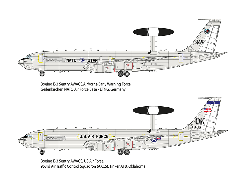 Le premier Boeing E-3 Sentry AWACS fut livré en mars 1977. Au total, 34 appareils furent construits au cours des sept années suivantes. L'OTAN, le Royaume-Uni, le Royaume-Uni, la France et l'Arabie saoudite en acquirent également 18, 7, 4 et 5.