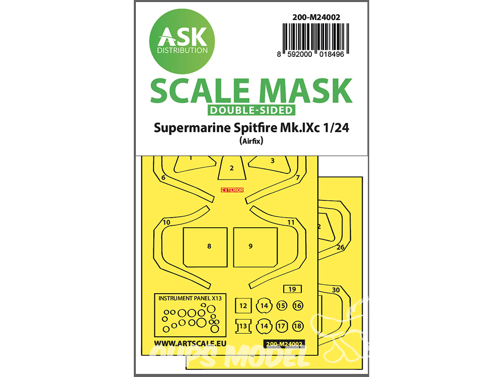 ASK Art Scale Kit Mask M24002 Supermarine Spitfire Mk.IXc Airfix Recto Verso 1/24