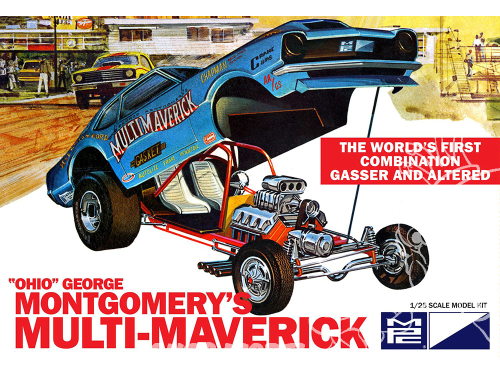 Le Multi Maverick peut être changé de classe Gasser à classe Altered une fois le kit construit. Avec des ailes interchangeables et un empattement réglable, le kit peut basculer à tout moment. Les kits comprennent également un 429 Semi Hemi, une prise d'injecteur, des collecteurs de course, une cage de sécurité, des sièges de course, une suspension de course, une construction tubulaire, une carrosserie inclinable, des roues de course et des pneus de course tampographiés. Le kit comprend également un ensemble de décalcomanies de toboggan aquatique remasterisées et un emballage Retro Deluxe MPC.