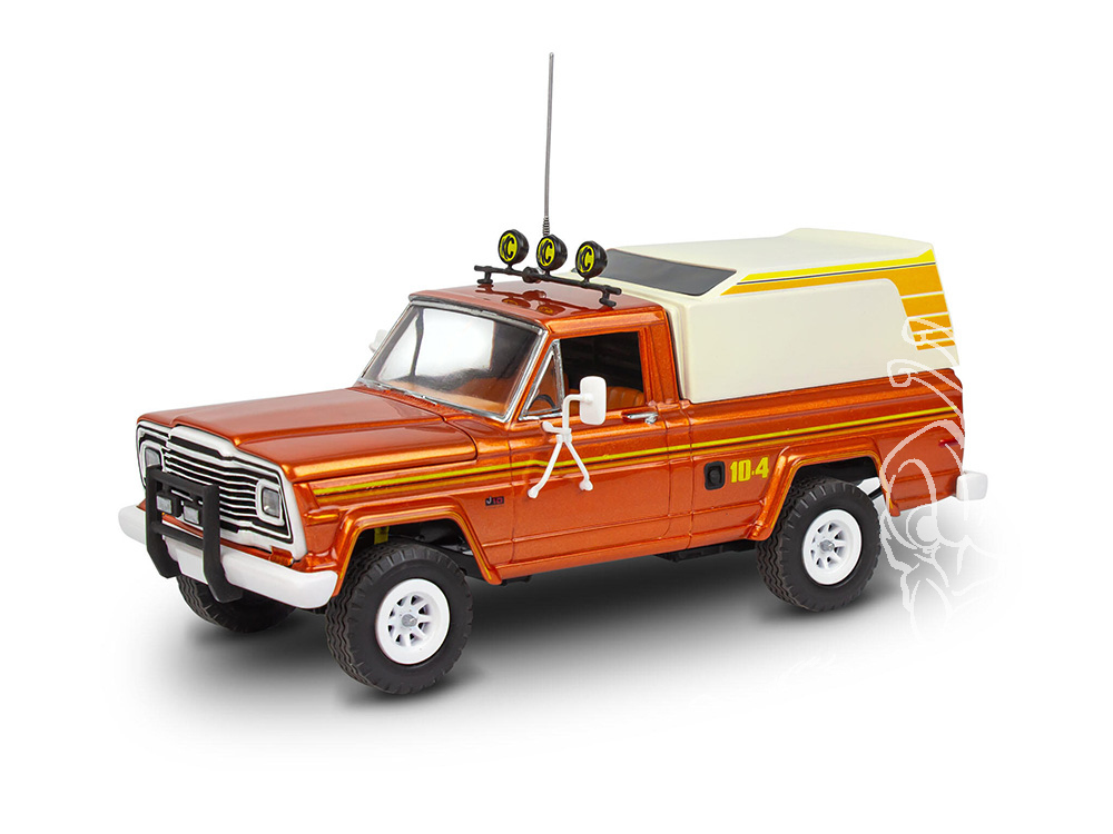 Dis donc, mon pote, tu as les oreilles ouvertes ? Si tu entendais ces mots sur ta radio CB et que tu voulais parler, la bonne réponse était 10-4 ! L'engouement inoubliable pour la CB des années 70 a inspiré le pack d'apparence 10-4 de Jeep pour le pick-up J-10 de 1979, l'un des nombreux traitements graphiques spéciaux mémorables disponibles sur les Jeep de l'époque. Le pick-up J-10 de 1979 était une évolution des robustes pick-up Gladiator de Jeep du début des années 60, mais avant que cette machine redoutable ne prenne le large, les ingénieurs de Jeep avaient ajouté un puissant moteur V8 de 360 pouces cubes et une transmission intégrale Quadra-Trac. N'oubliez pas d'ajouter ce kit Revell classique à votre collection dès aujourd'hui ! . Le capot ouvrant dévoile un moteur AMC 360 V-8 détaillé. . Châssis moulé séparément avec transmission à quatre roues motrices. . Les pièces optionnelles comprennent une antenne radio CB, un arceau de sécurité monté sur le plateau de style d'origine, une rampe lumineuse montée sur le toit, un choix de deux protections de calandre, une paire de jerricans et une boîte à outils. . Comprend un couvre-platforme personnalisé en option avec des vitres transparentes.