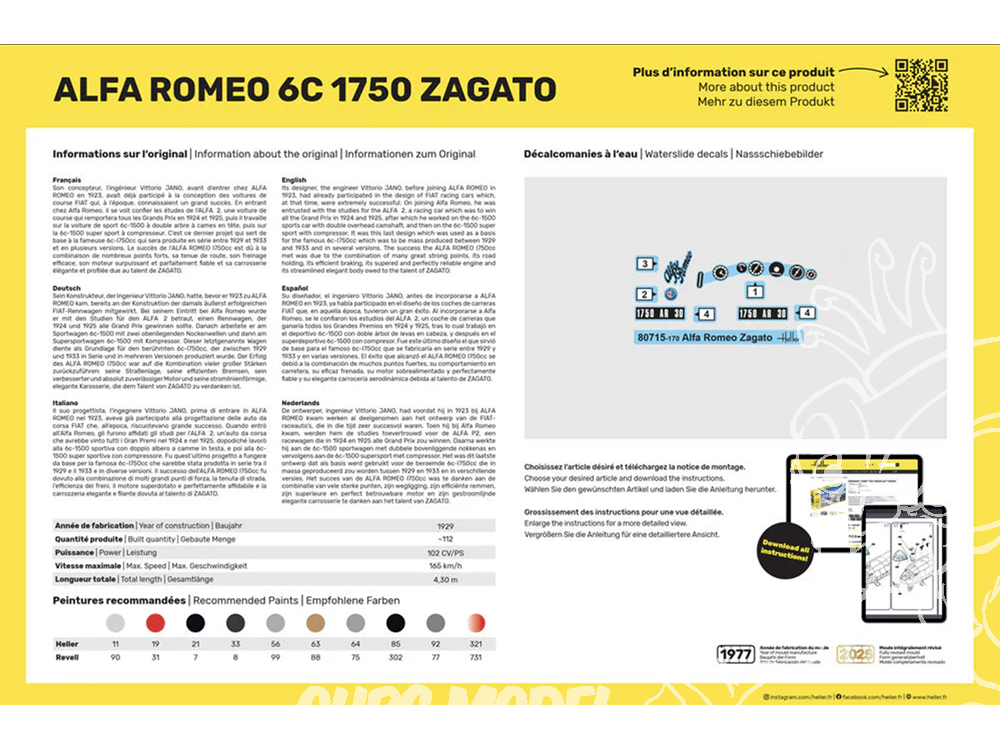 Heller maquette voiture 80715 Alfa Romeo 6C 1750 Zagato 1/24