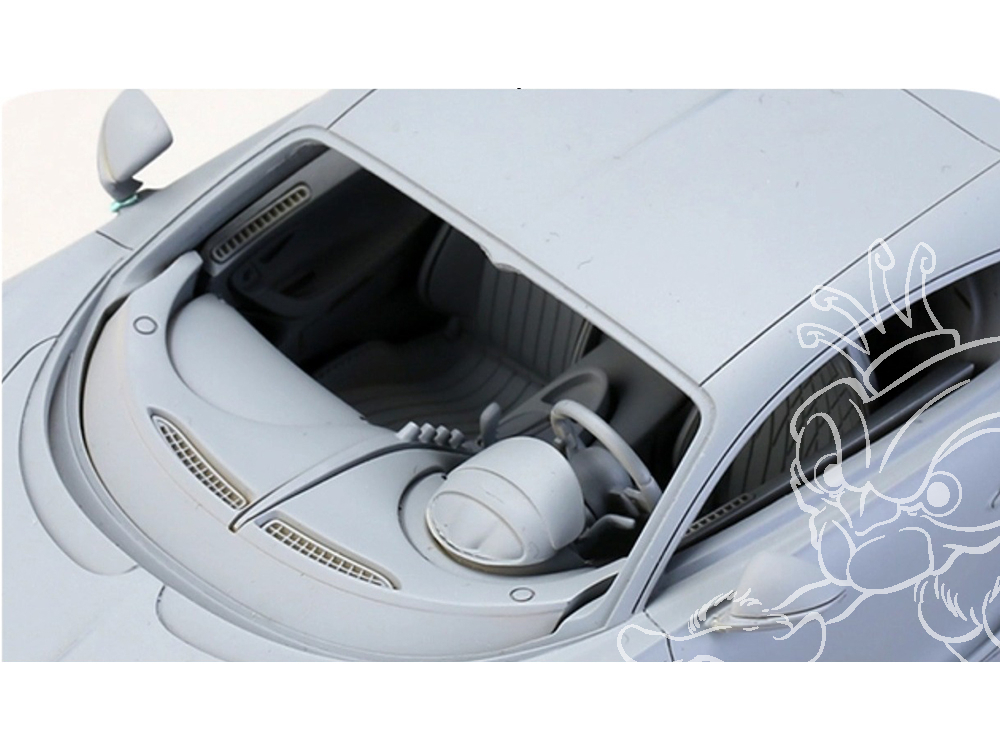 Tous les éléments intérieurs (sièges, tableau de bord, ceintures de sécurité, etc.) sont conçus avec un réalisme saisissant grâce à des pièces en résine extrêmement détaillées.