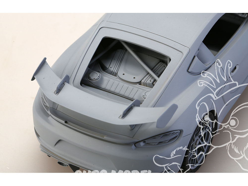 La Porsche 718 Cayman GT4 RS a été abaissée de 30 mm et est équipée du Porsche Active Suspension Management (PASM). Son poids a été optimisé au maximum pour atteindre les 1 415 kg à vide, soit 35 kg plus léger qu’une Porsche 718 Cayman GT4 équipée de la boîte PDK. Le capot, les prises d’air latérales, les ailes avant et arrière sont en plastique renforcé de fibre de carbone pour réduire le poids et garder la voiture la plus légère possible. Le Cayman GT4 RS dispose aussi d’un système d’échappement sport en acier inoxydable et d’une lunette arrière en verre léger.