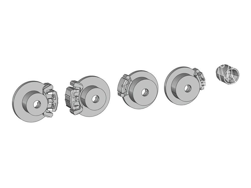 Ce kit comprend des disques de frein et un outil de découpe d'échappement grand diamètre, tous deux fabriqués à partir de pièces imprimées en 3D.