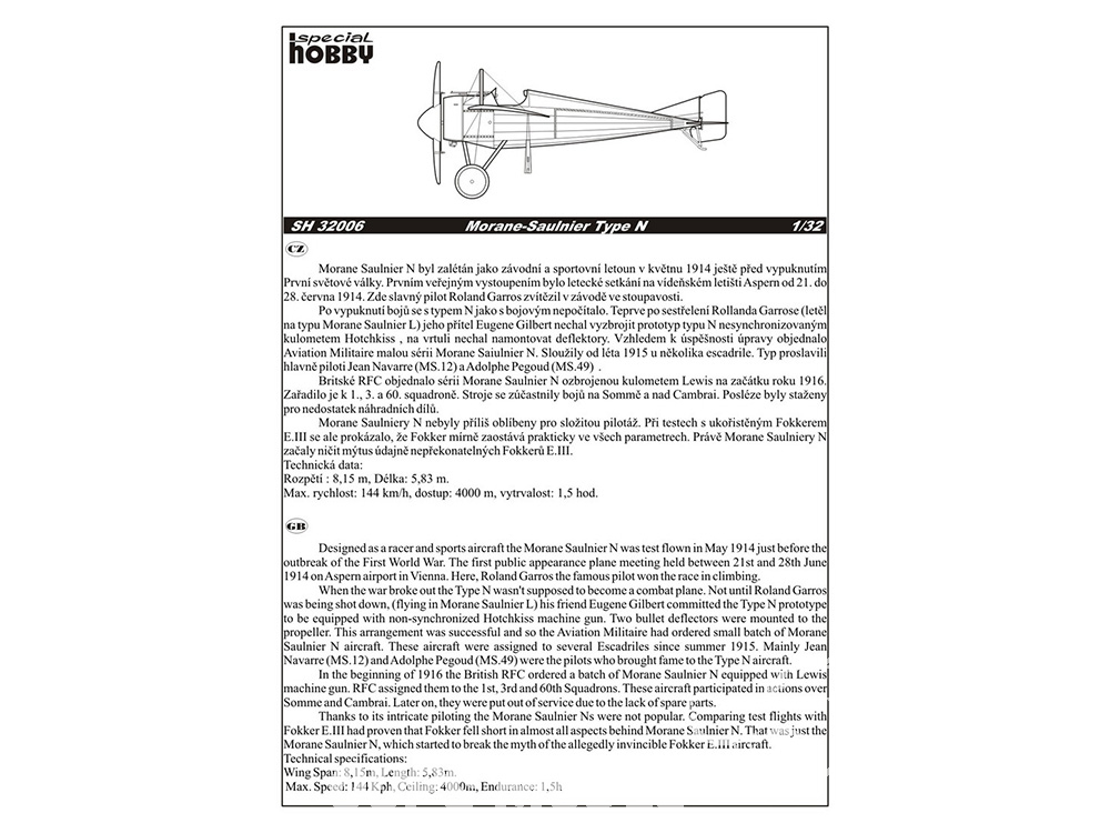 Special Hobby maquette avion 32006 Morane-Saulnier Type N 1/32