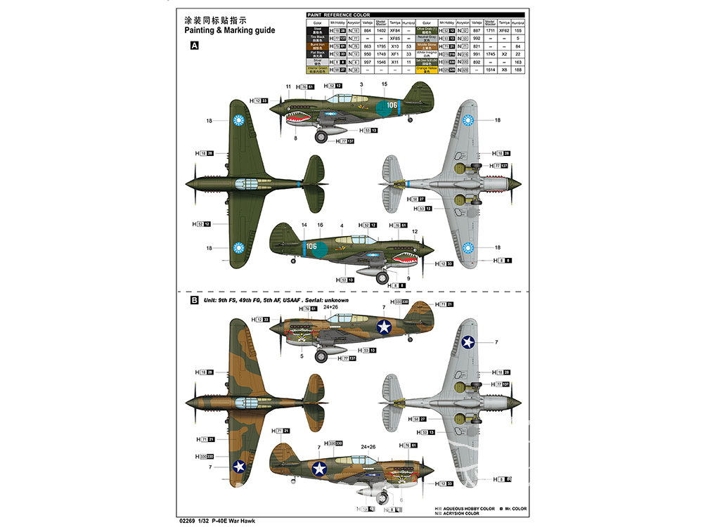 P-40E (désignation usine : Curtiss Hawk Model 87B2) six mitrailleuses de 12,7 mm dans les ailes, 820 exemplaires, à partir de septembre 1941.