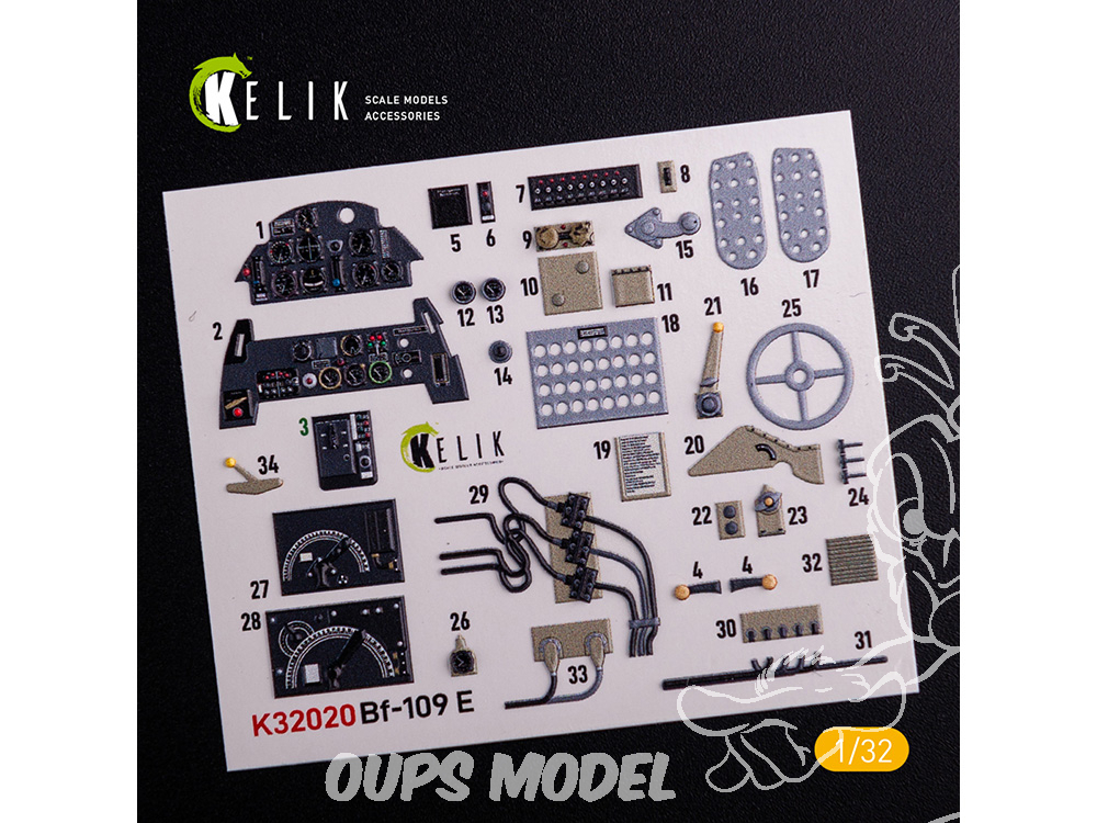 Kelik Decals 3D K32020 Autocollant 3D intérieur BF-109 E avec pièces imprimées en 3D pour kit Trumpeter 1/32