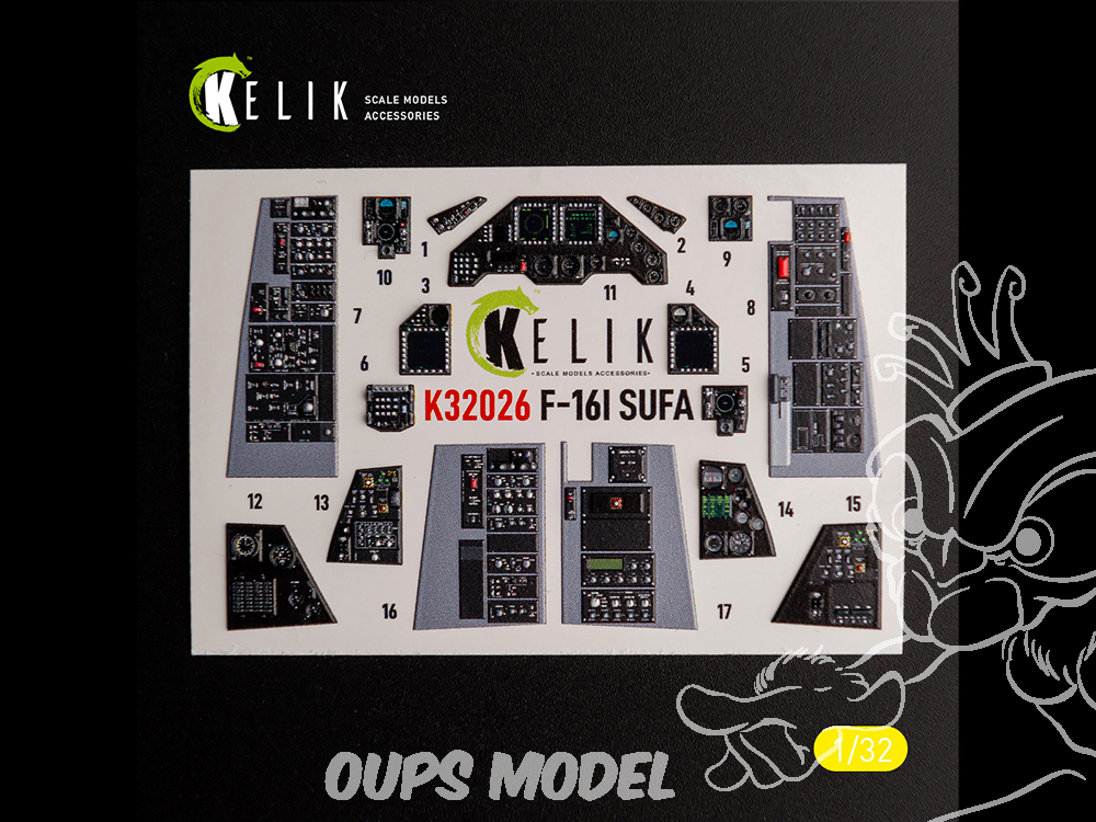 Kelik Decals 3D K32026 Autocollant 3D intérieur F-16I Sufa pour kit Academy 1/32