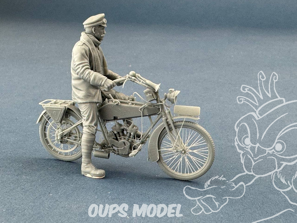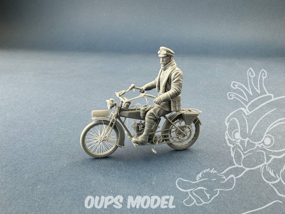 Un estafette allemand debout sur une moto 1/32