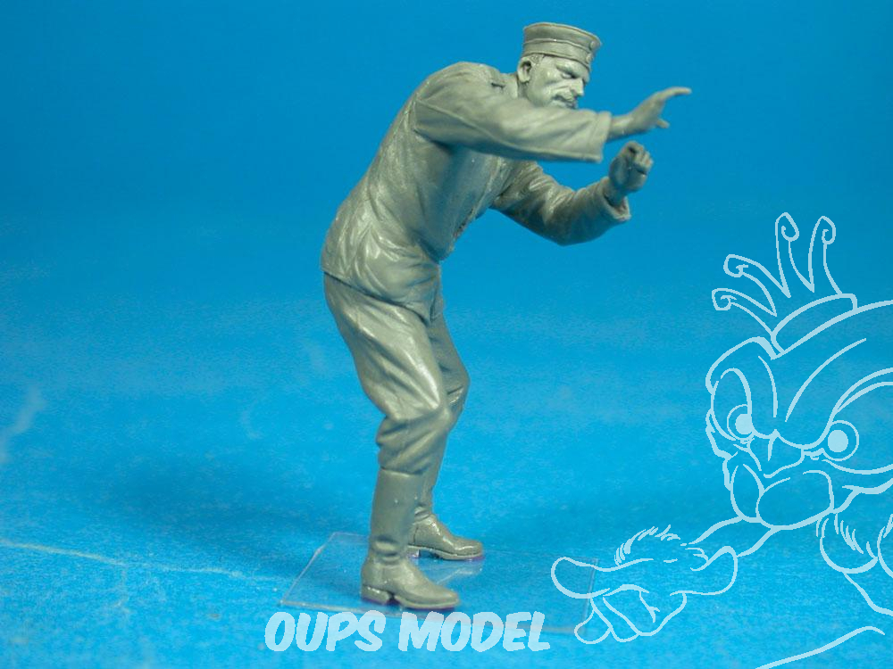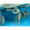 Figure en résine représentant un membre d'équipage au sol allemand armant et ou vérifiant la bombe sous un bombardier Gotha
