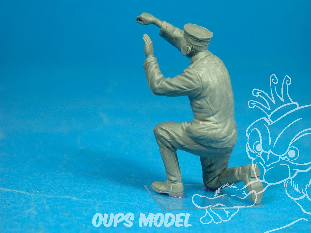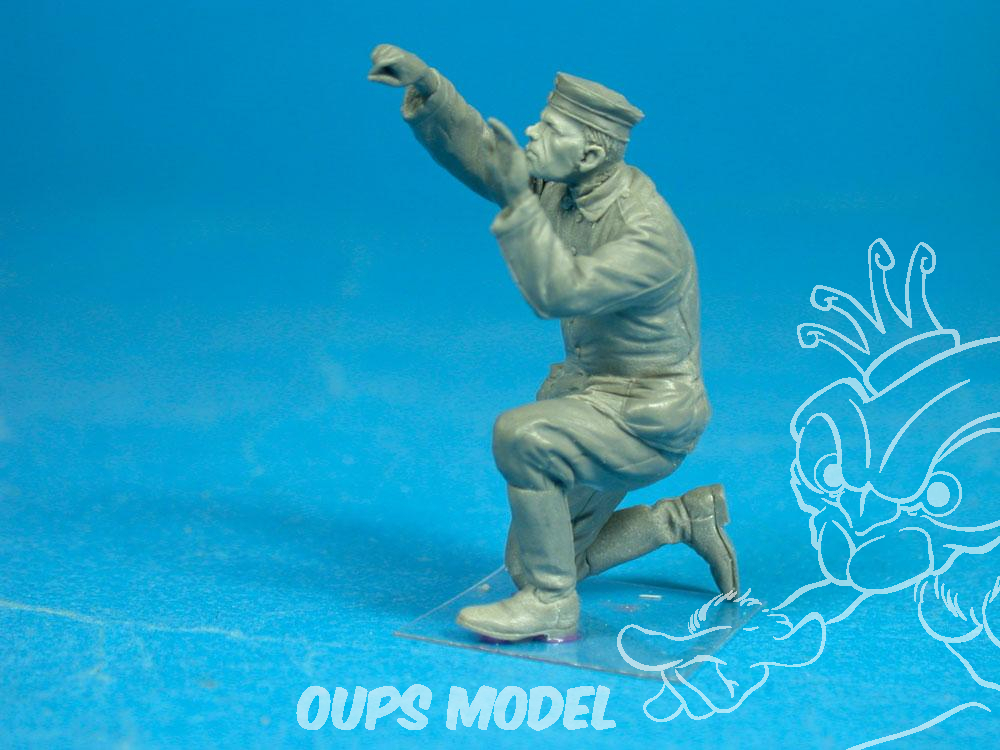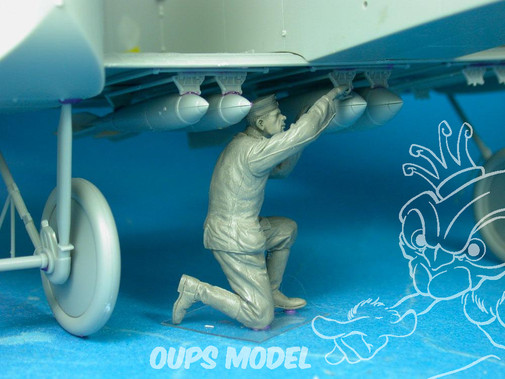 2ème figurine en résine représentant un membre d'équipage au sol allemand armant ou et vérifiant la bombe sous un bombardier Gotha