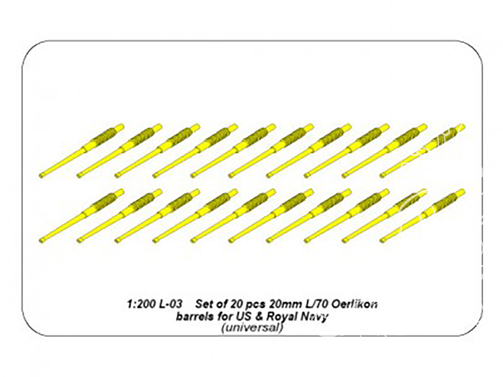 Aber 200L03 Set de 20 Futs de canon 20 mm L/70 Oerlikon Mk.10 pour navires de l'US Navy 1/200