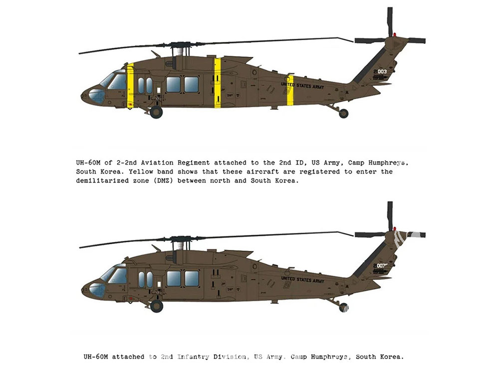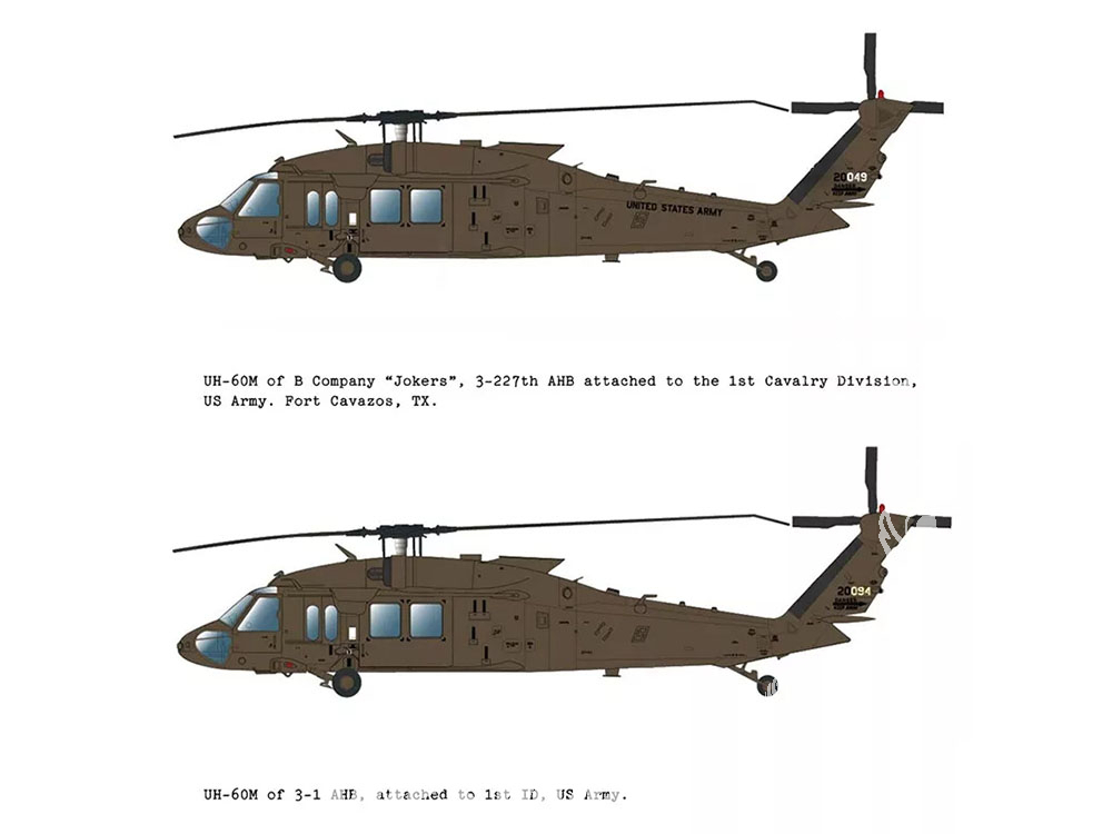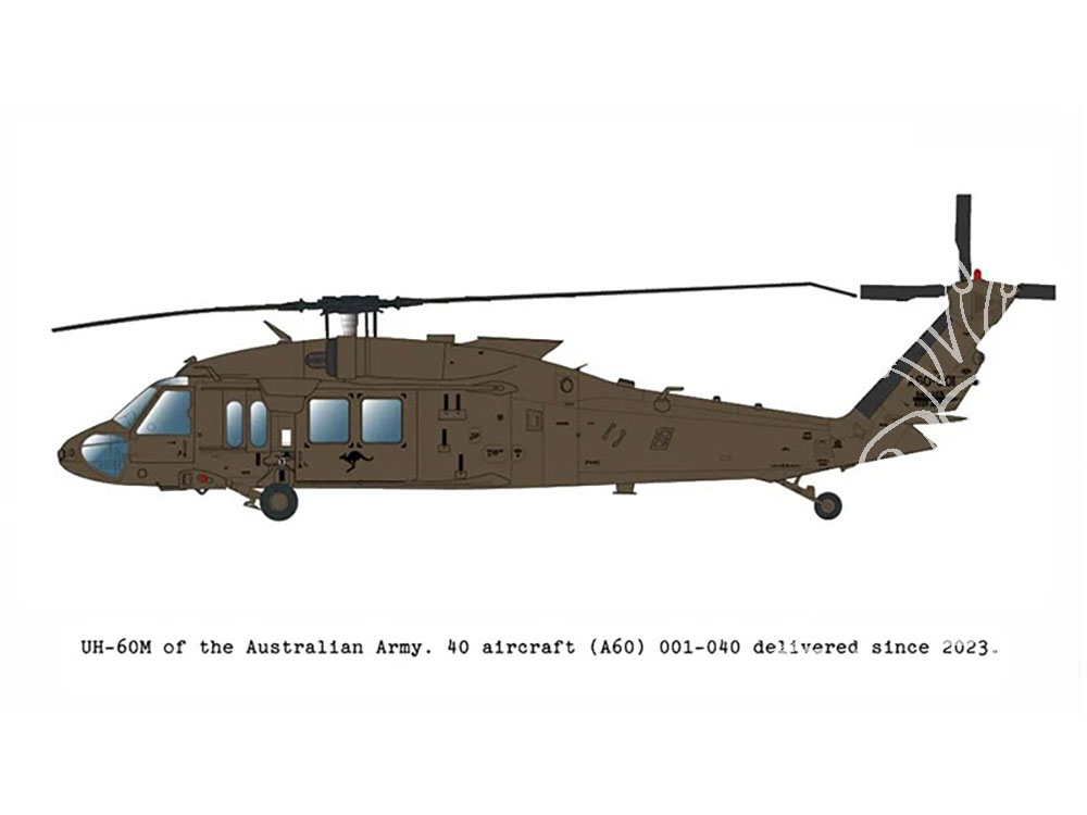Le Sikorsky UH-60 Black Hawk est un hélicoptère moyen multi-rôle et de soutien d'infanterie de production américaine avec une structure métallique dans une disposition classique avec un rotor principal et un rotor de queue sur le faisceau. L'entraînement de la version UH-60 D est assuré par deux moteurs General Electric T-700-700 d'une capacité de 1560 CV chacun. Le vol du premier prototype a eu lieu en 1974, et la production en série, qui a débuté en 1974, est toujours en cours. On estime que plus de 4 000 exemplaires de cet hélicoptère ont été construits en 2017.