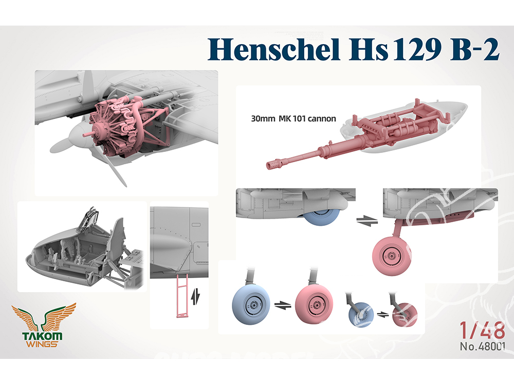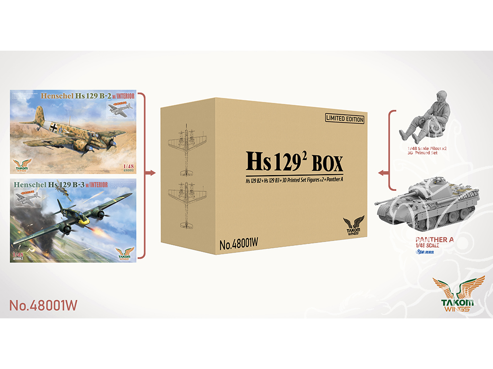 Maquette plastique avion Big Box Henschel Hs 129 B-2 avec intérieur + Henschel Hs 129 B-3 avec intérieur + Panther A 1/48 + 2 pilotes assis imprimés en 3D (pour avions).