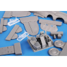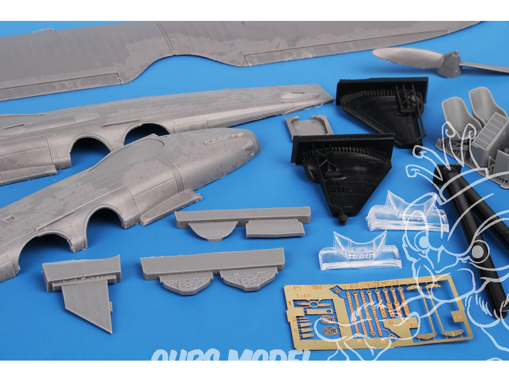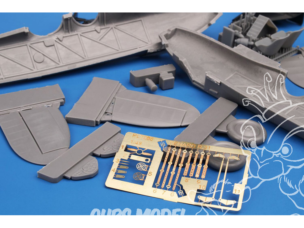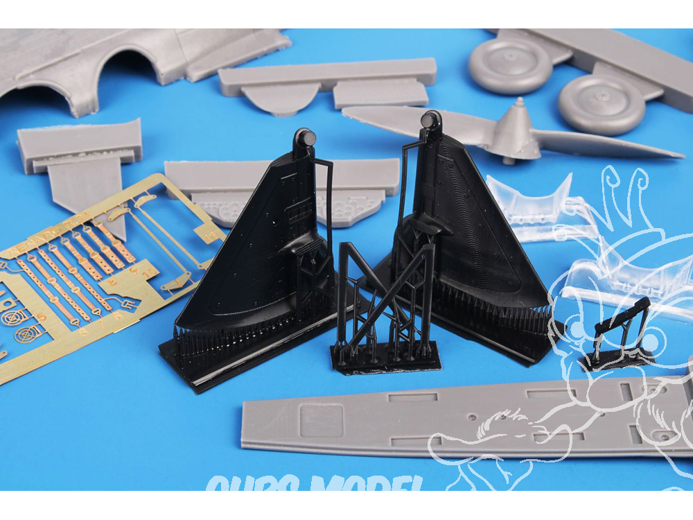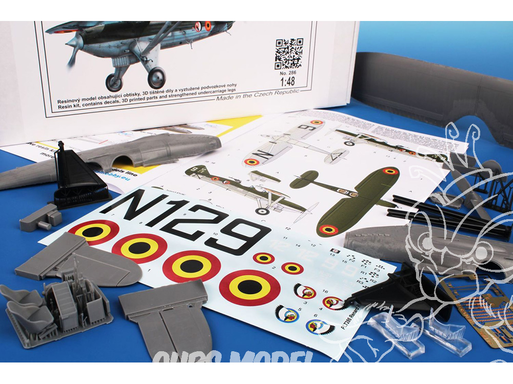Les pièces principales sont moulées en résine et sont fournies avec un ensemble de pièces imprimées en 3D. Des décalcomanies sont proposées pour les appareils des 9e et 11e escadrilles. Ces deux unités arboraient une tête de Sioux comme emblème, l'une sur fond bleu, l'autre sur fond rouge.