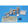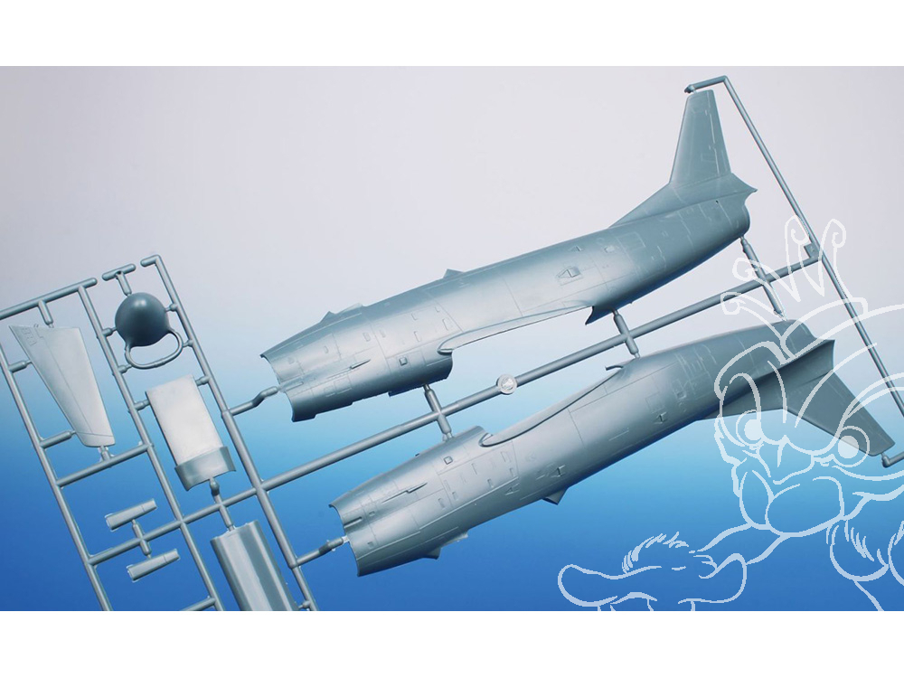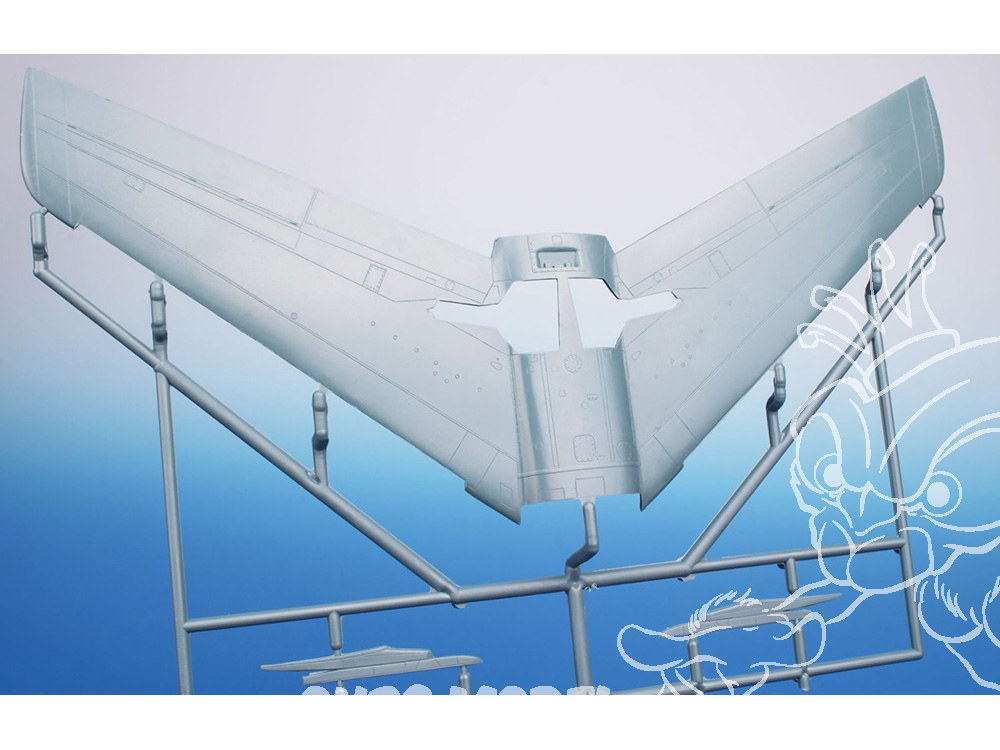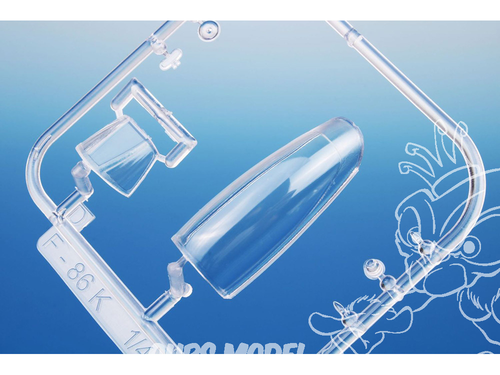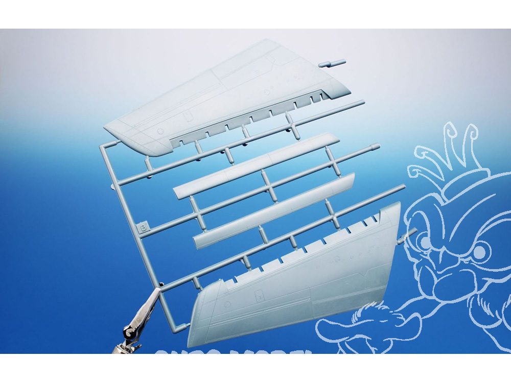 La boîte contient quatre grappes de pièces en plastique gris, une grappe de pièces transparentes, des pièces moulées et des pièces photo-découpées. Les décalcomanies proposent trois appareils aux couleurs métallisées, les versions italienne et néerlandaise arborant l'insigne de leur unité sur le fuselage. L'appareil norvégien, le plus coloré, porte non seulement l'insigne de son unité, mais est également décoré d'une gueule proéminente et d'une caricature de la chienne Laïka. Les décalcomanies sont très nombreuses et différentes pour chacun des trois appareils.