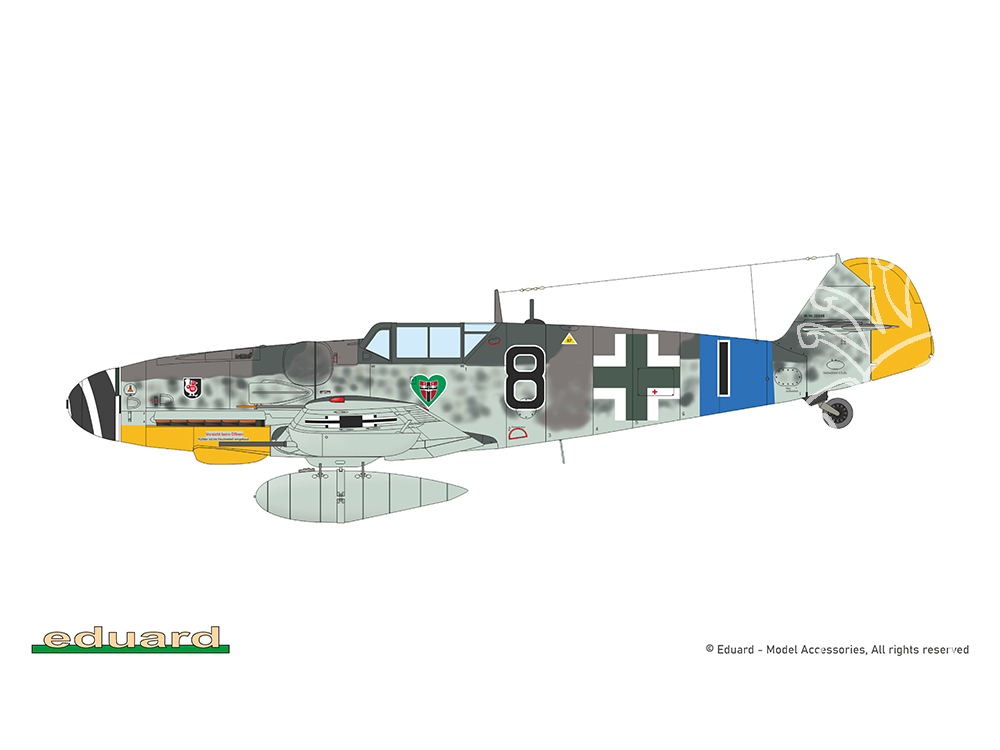 À partir de ce kit, il est possible de réaliser des Messerschmitt équipés de la verrière standard et du gouvernail de direction standard.
