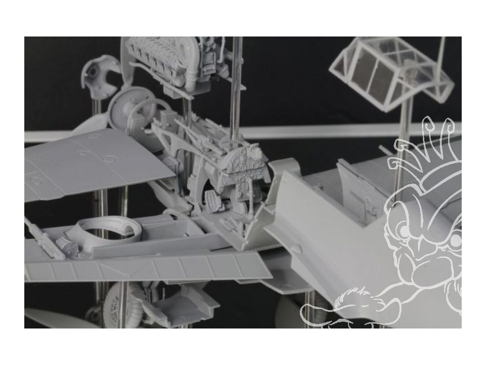 Les ailes s'emboîtent directement dans le fuselage monobloc pour une meilleure stabilité lors de l'assemblage. Une ingénierie de pointe garantit un assemblage rapide et simple sans compromettre le niveau de détail et la qualité de la maquette. Les joints d'aile sont astucieusement dissimulés sous le bord d'attaque incurvé de l'aile supérieure, réduisant ainsi le besoin de masticage et de ponçage. Le résultat : une aile à l'aspect parfait, assemblée sans travail supplémentaire fastidieux.