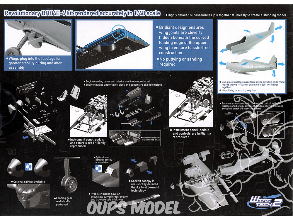 Dragon Models est fier d'annoncer un projet révolutionnaire, fruit de 10 ans de développement ! Premier modèle de la nouvelle série Wing Tech 2 de Dragon, le Bf109E-4N au 1/48 bénéficie de multiples innovations techniques inédites dans le domaine des maquettes d'avions de guerre.