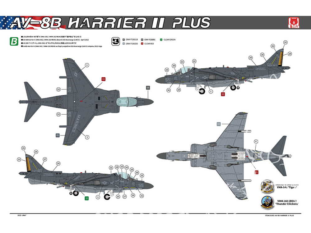 - AV-8B Harrier II (VMA-542 / VMM-263 REIN) aboard USS Kearsarge (LHD 3) - Juin 2022.
