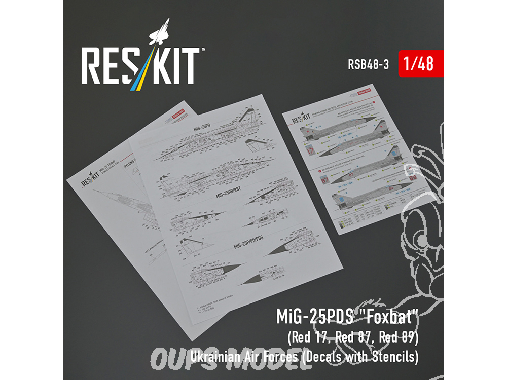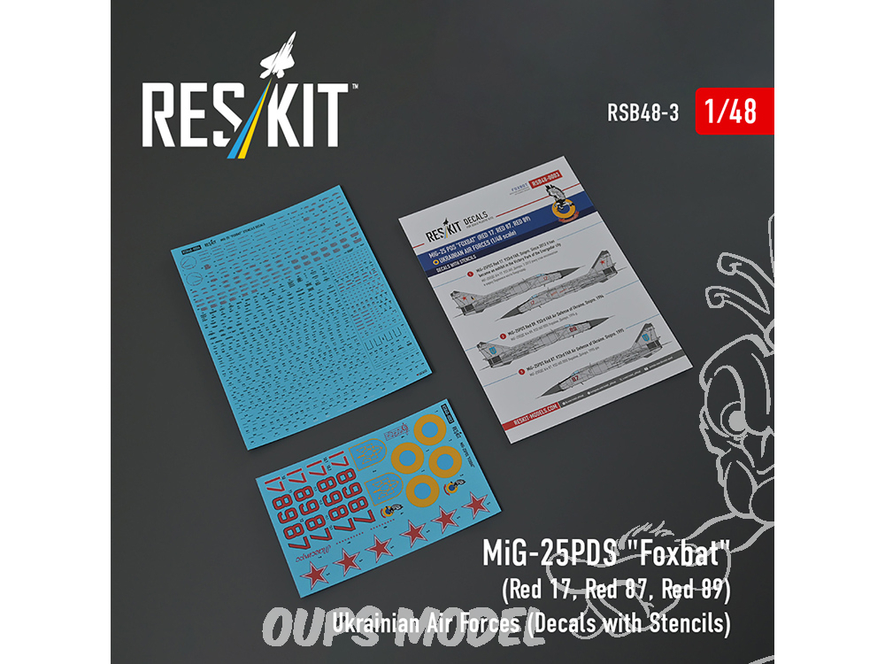 ResKit Figurine RSB48-0003 MiG-25PDS Foxbat Rouge 17,87 et 89 Forces aériennes ukrainiennes Decalques avec pochoirs 1/48