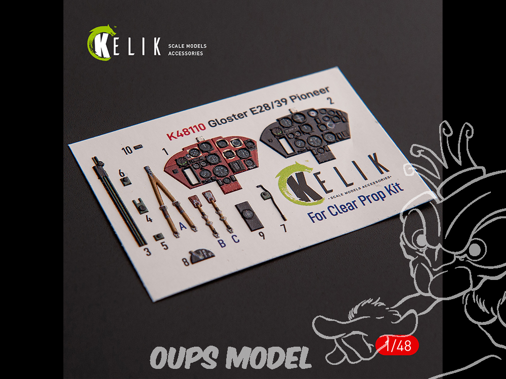 Kelik K48110 Autocollants 3D intérieurs Gloster E28/39 Pioneer pour kit ClearProp 1/48