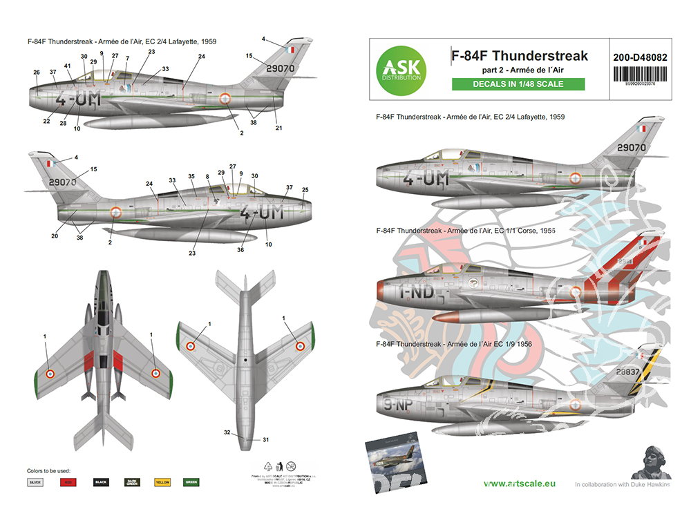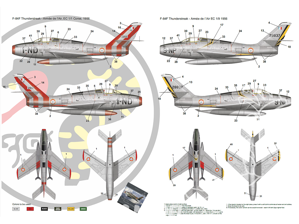 Décalques F-84F Thunderstreak Partie 1 - Armée de l'Air Française.