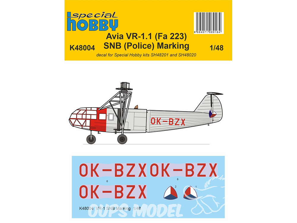 Special Hobby Decalques hélico K48004 pour un VR-1 SNB kit Special Hobby 1/48