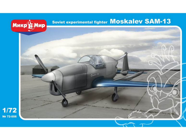 Un chasseur similaire au D.XIII, et en fait inspiré par celui-ci, fut construit en Russie et achevé fin 1940. Aleksandr Moskalev avait commencé à développer des avions autour du MV-6, une version russe d'un six cylindres en ligne Renault. moteur, vers 1936. Apparemment, c'était moins par choix que parce qu'on lui avait refusé des moteurs plus puissants, mais le SAM-13 en a tiré le meilleur parti. Il avait un fuselage court et plat avec des moteurs MV-6 à l'avant et à l'arrière, et une double poutre de queue portant une queue horizontale elliptique avec, de manière très inhabituelle, une seule aileron de queue au milieu. L'aile fortement effilée était petite, ne mesurant que 9 mètres carrés. La compacité était strictement nécessaire car le MV-6 ne développait que 270 ch. Le SAM-13, entièrement en bois (à l'exception des supports moteur), était très léger, 754 kg à vide. L'armement comprenait deux mitrailleuses ShKAS synchronisées et deux autres dans les ailes.