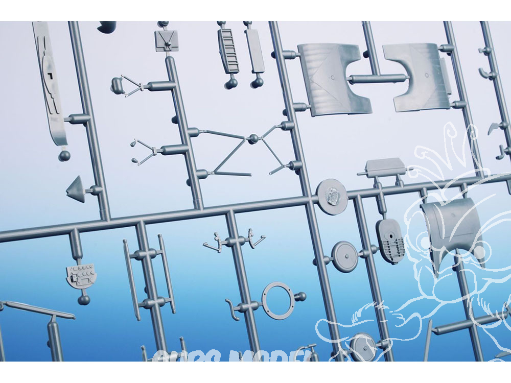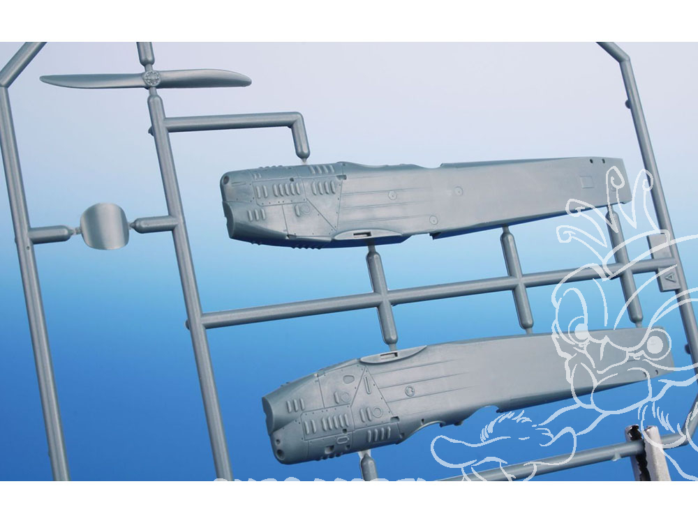 Ces machines à disques sont également représentées dans notre kit, qui comprend trois grappes de styrène reliées par une avec des pièces transparentes, un ensemble de détails en résine et une frette de gravures. Les décalcomanies couvrent cinq machines de course avec de grands numéros de course et des emblèmes de fuselage. L'une des machines a été adaptée en monoplace pour gagner du poids.