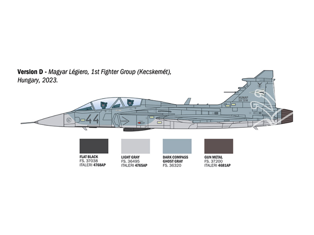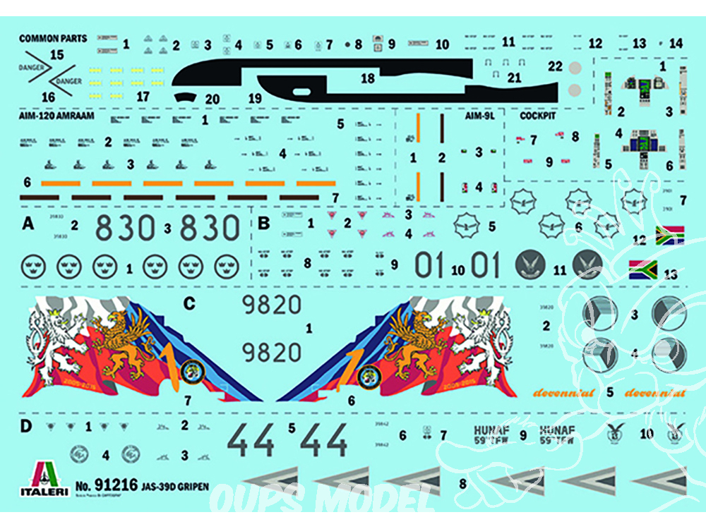 JACQUES D. le 10/09/2025Italeri nous propose son ancienne maquette du Gripen. Le modèle est simple et avare de détails , les montants de la grande verrière du cockpit manquent de netteté. Une belle planche de décals avec des cocardes suédoises, tchèques, hongroises et sud africaines vient agrémenter la maquette.