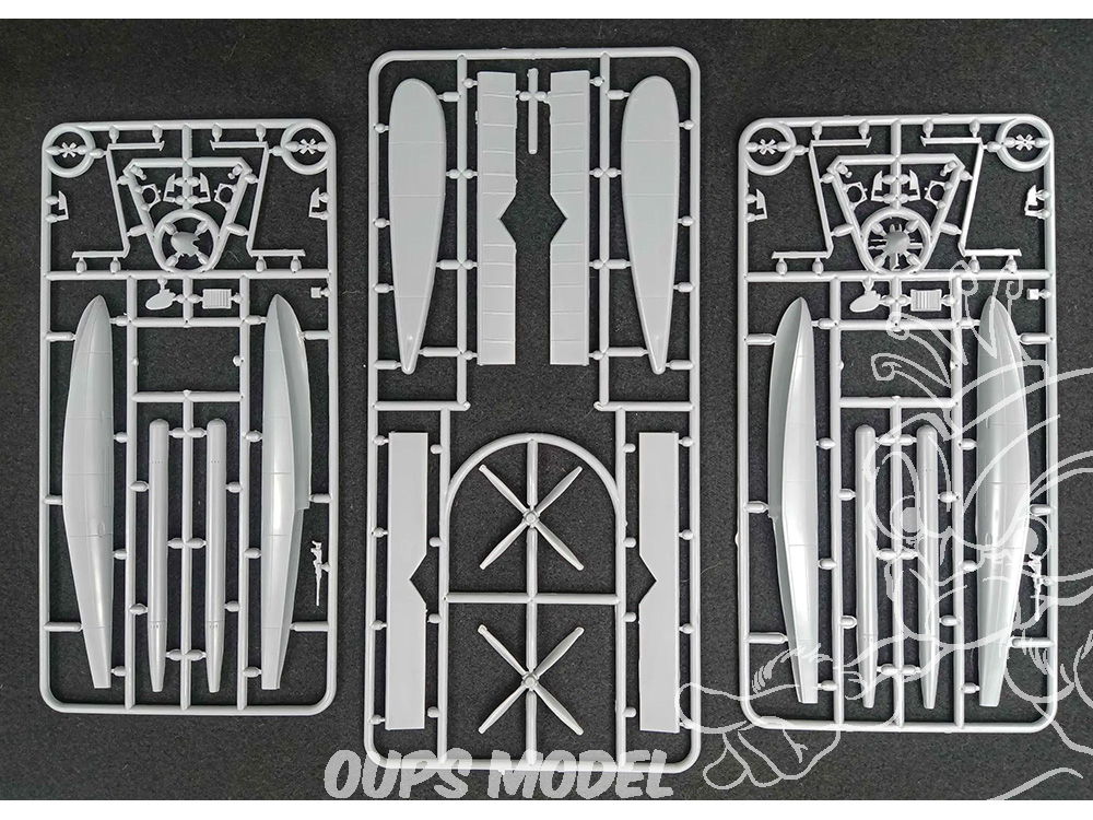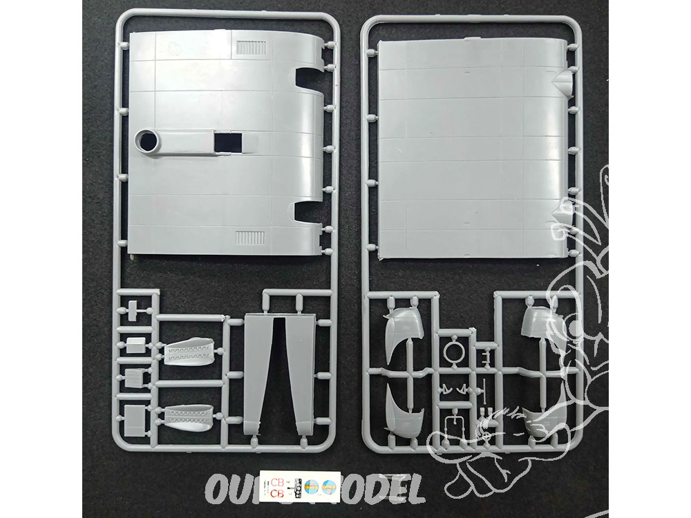 - La maquette comprend une planche de décalcomanies. Une fois achevé, sa longueur totale sera d'environ 140 mm et sa largeur d'environ 104 mm.