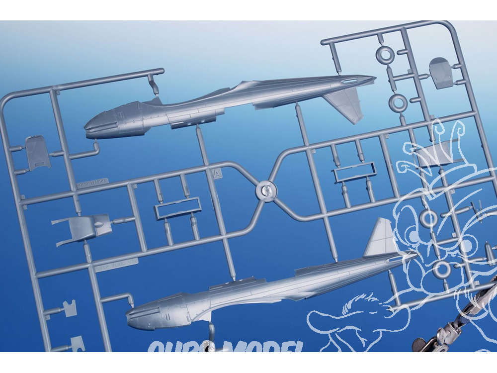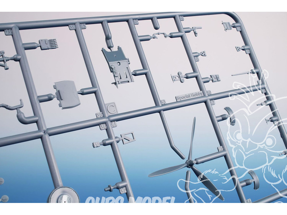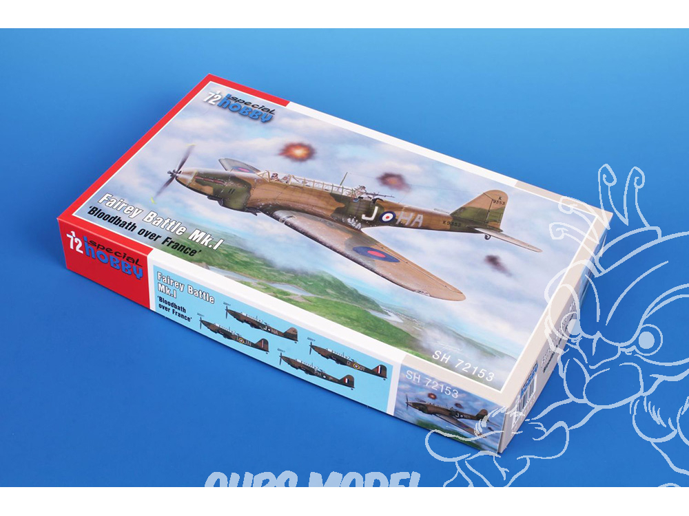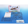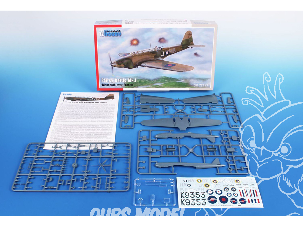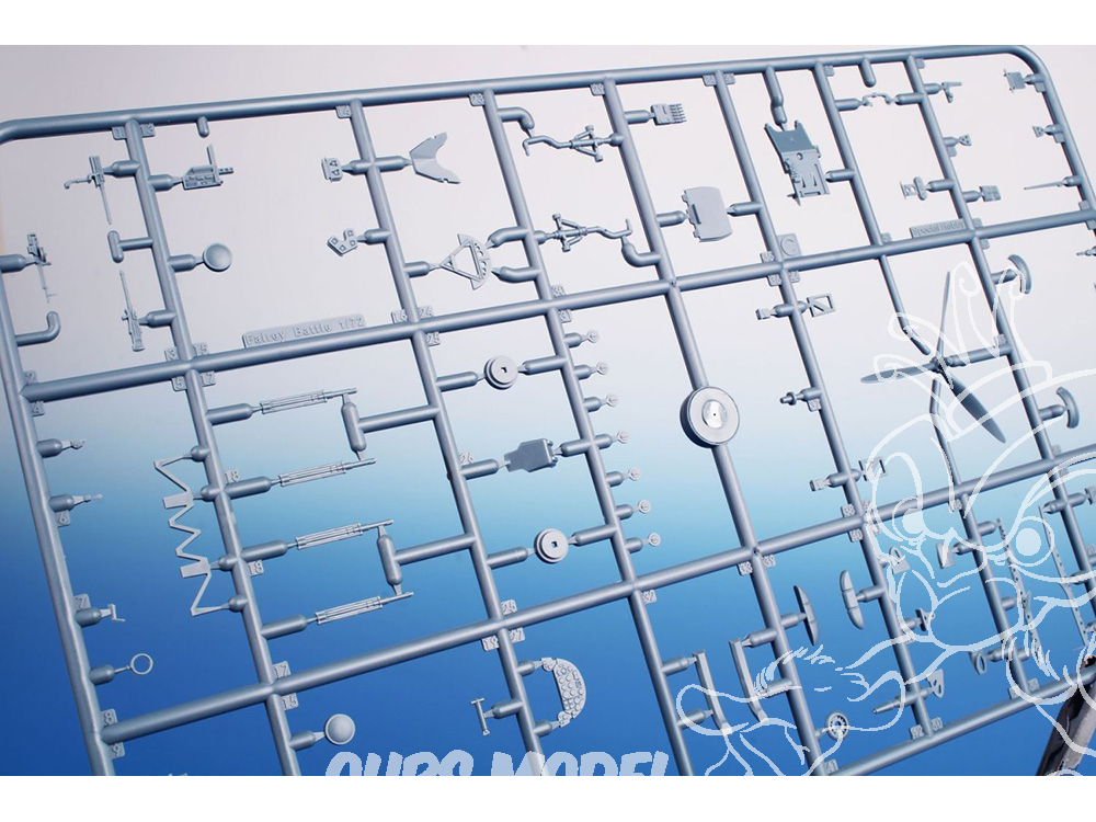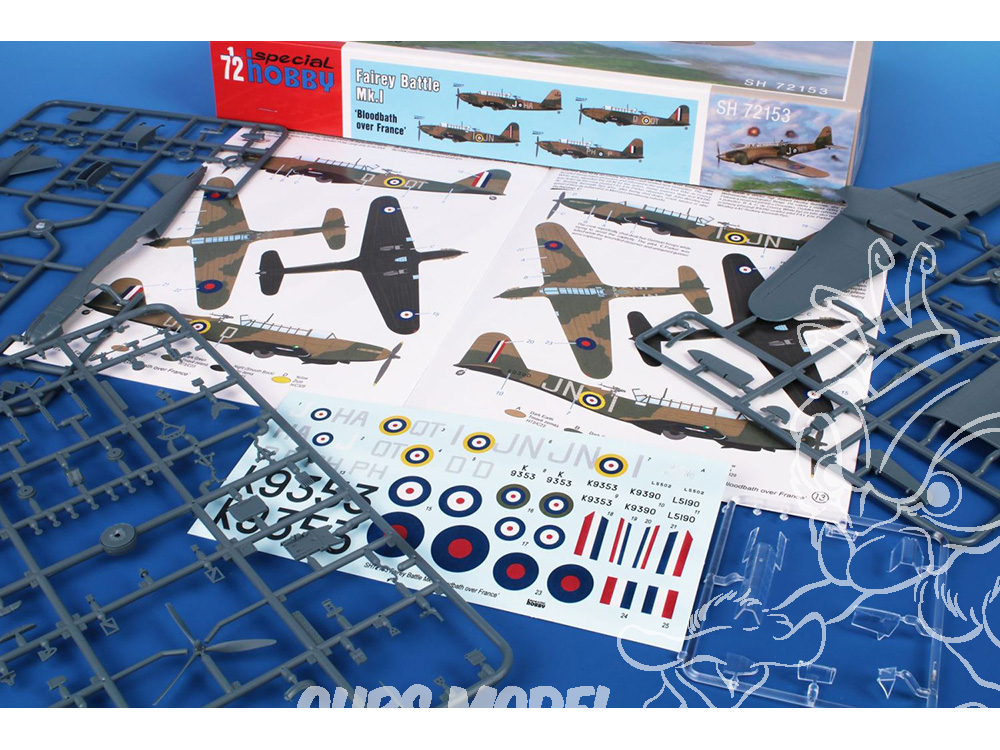 Trois grappes de pièces en plastique sont assemblées avec une grappe de pièces transparentes et de décalcomanies. La planche de décalcomanies propose quatre avions de la RAF perdus en Europe de l'Ouest en mai 1940, avec des histoires passionnantes et hautes en couleur de leurs équipages.