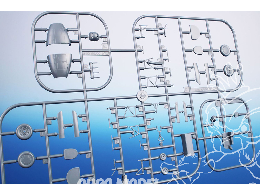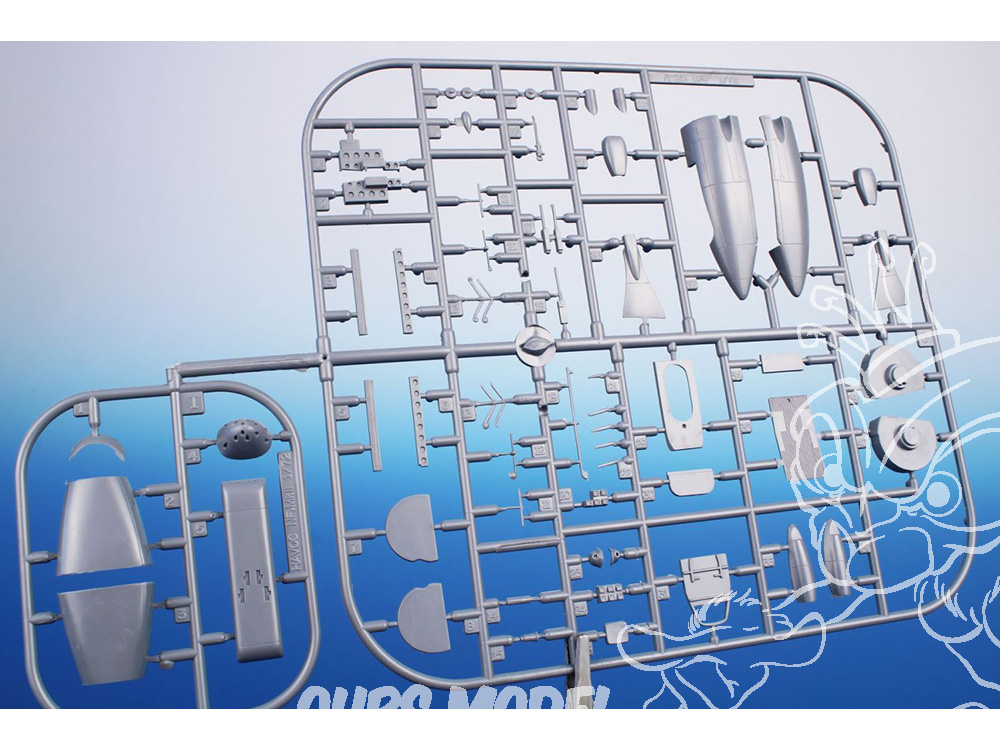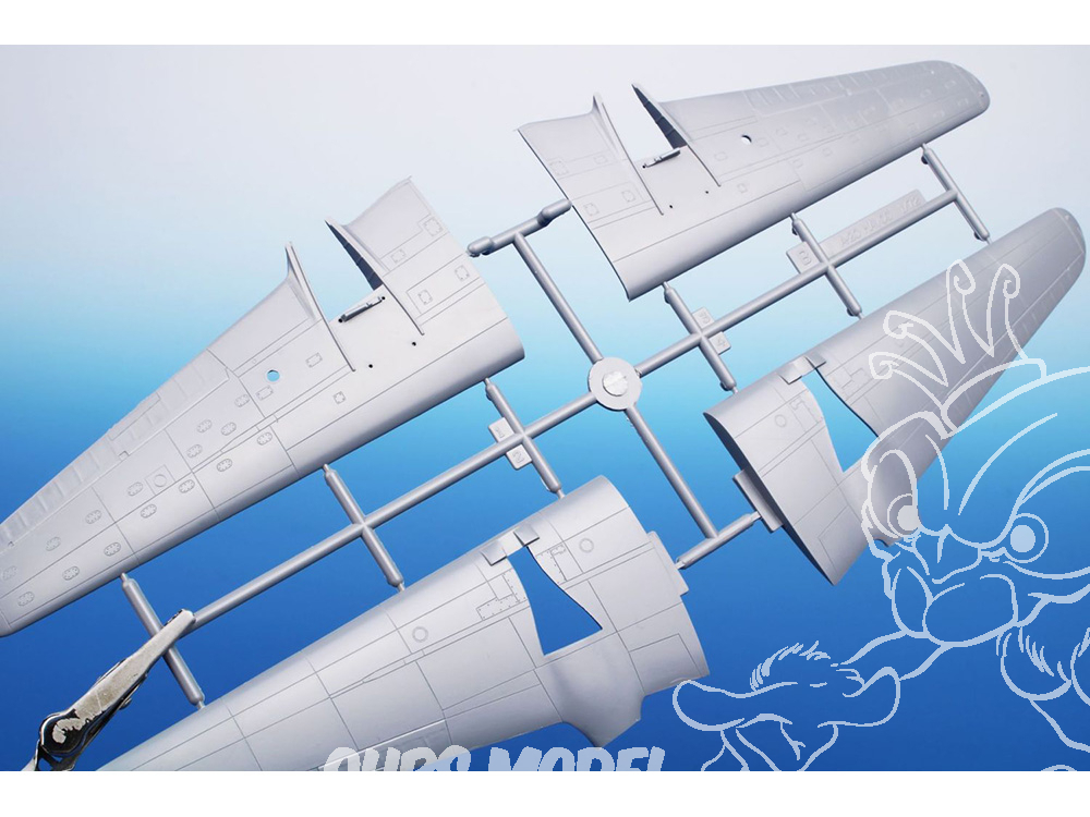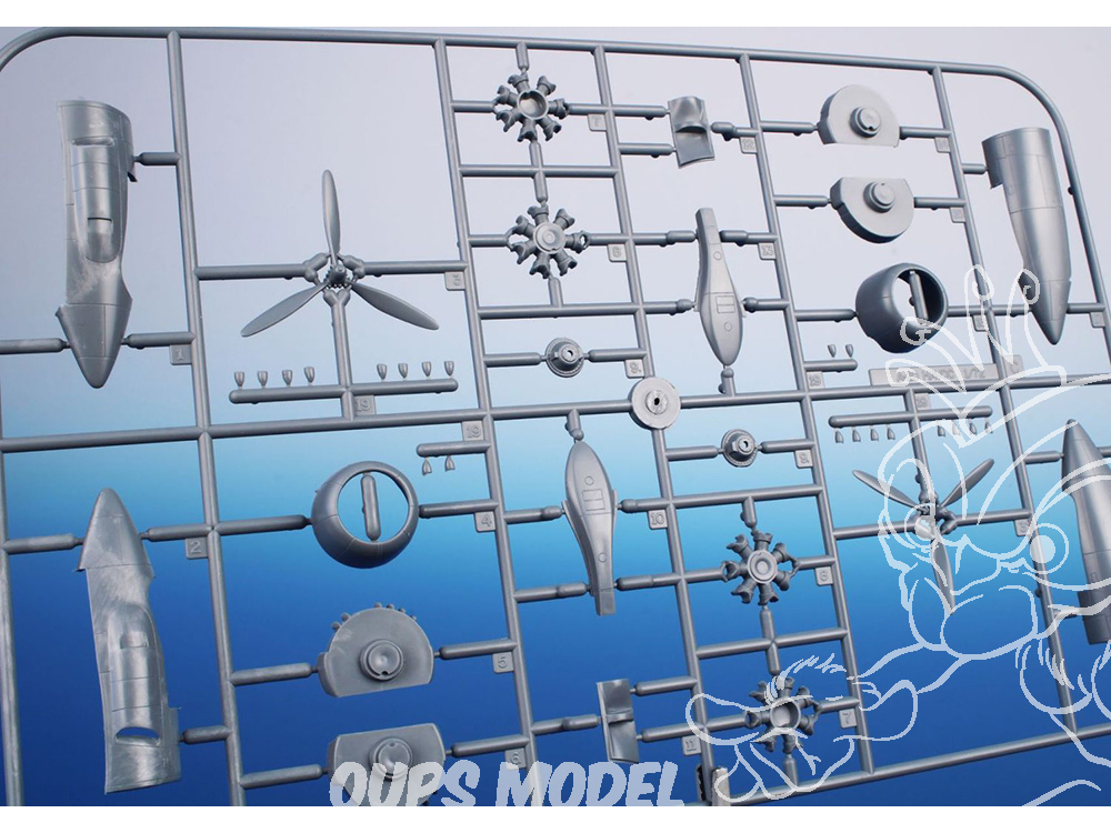 La maquette se compose de six grappes de pièces en plastique gris et d'une grappe de pièces transparentes. Les décalcomanies représentent quatre appareils, dont trois ont combattu dans le Pacifique et un a servi à l'entraînement aux États-Unis.
