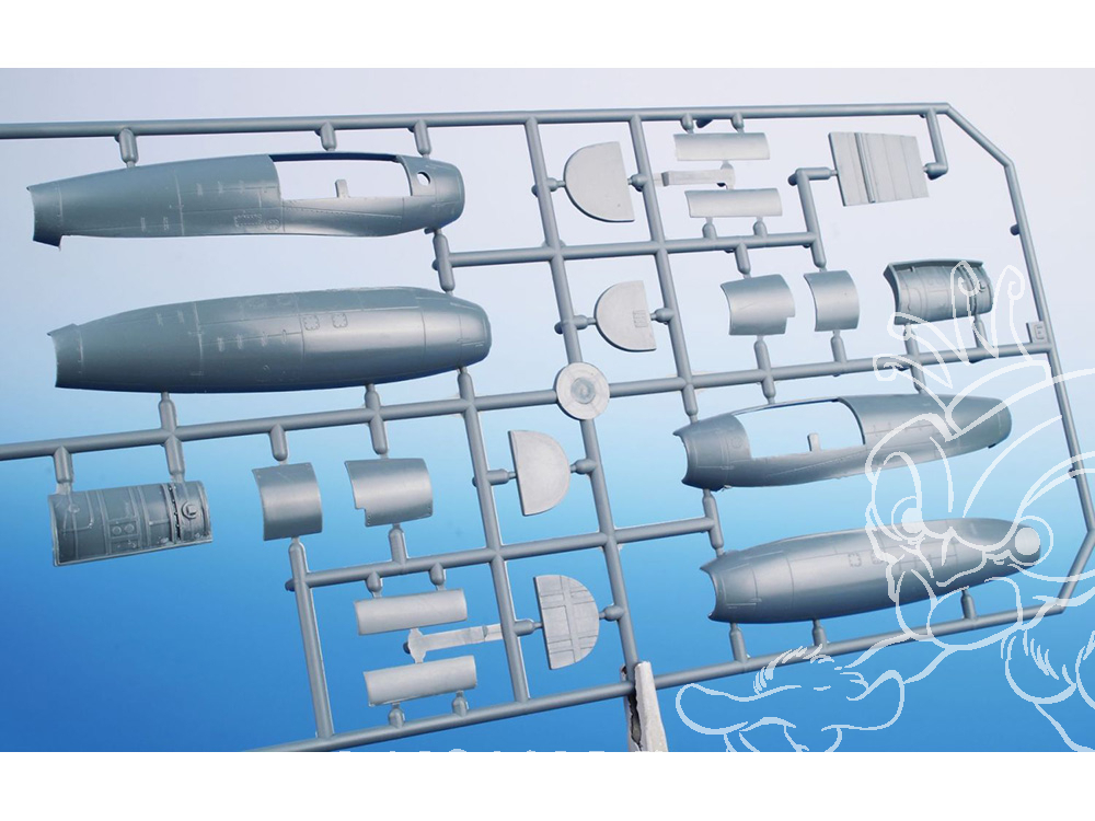 La maquette contient quatre grappes de pièces en plastique, une grappe de pièces transparentes, des pièces photo-découpées et des pièces en résine. Les décalcomanies proposent des marquages ​​pour quatre appareils de l'IAF, déclinés en cinq schémas de camouflage. L'un des appareils vola avec deux types de camouflage différents, l'autre arborant sa couleur naturelle.