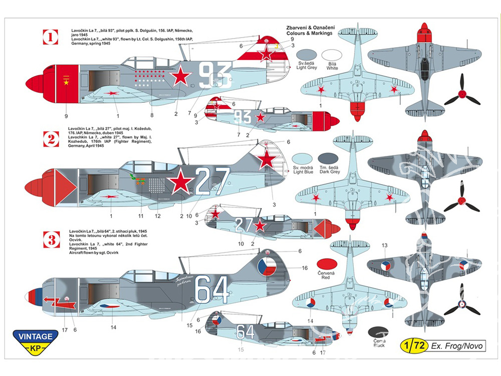 Le La-7 a été piloté par l'as soviétique Ivan Nikitovich Kojedoub. D'origine ukrainienne, Kojedoub, surnommé « Ivan le Terrible », a été fait trois fois Héros de l'Union soviétique. Il a remporté ses 17 dernières victoires aériennes en 1945 sur un La-7 numéroté 27, qui est maintenant conservé dans le musée de l'armée de l'air à Monino en périphérie de Moscou. Un des avions allemands qu'il a abattu était le Messerschmitt Me 262 du sergent Kurt Lange du 1./KG(J)54, au-dessus de Francfort-sur-l'Oder le 15 février 1945.