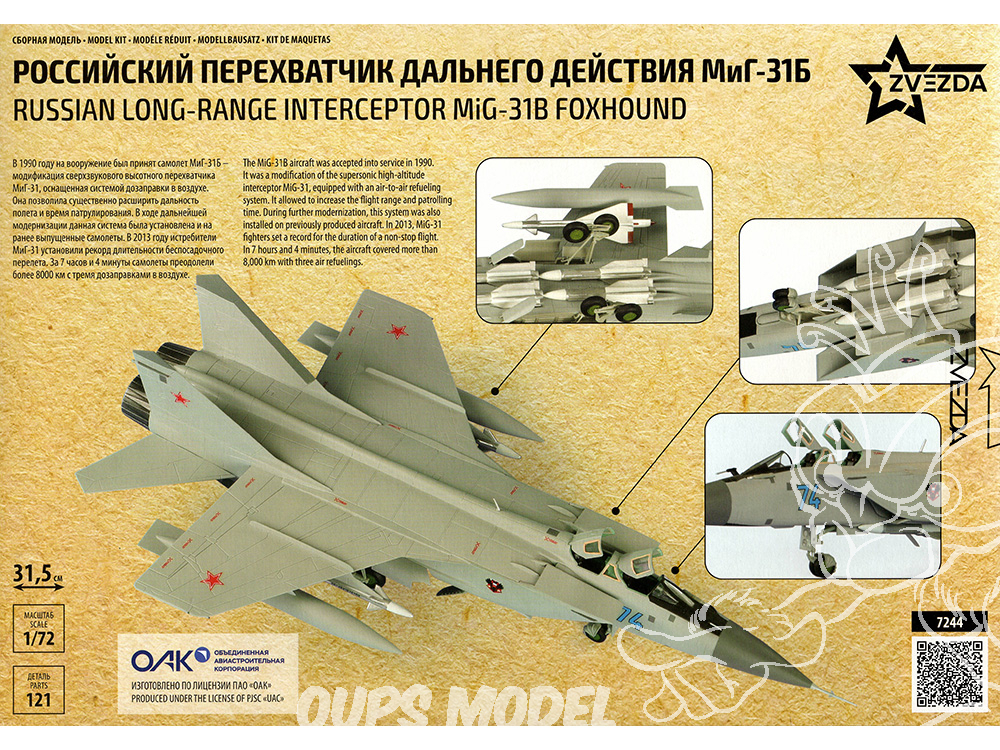 Zvezda maquette avion 7244 Mikoyan-Gourevitch MiG-31B Foxhound 1/72