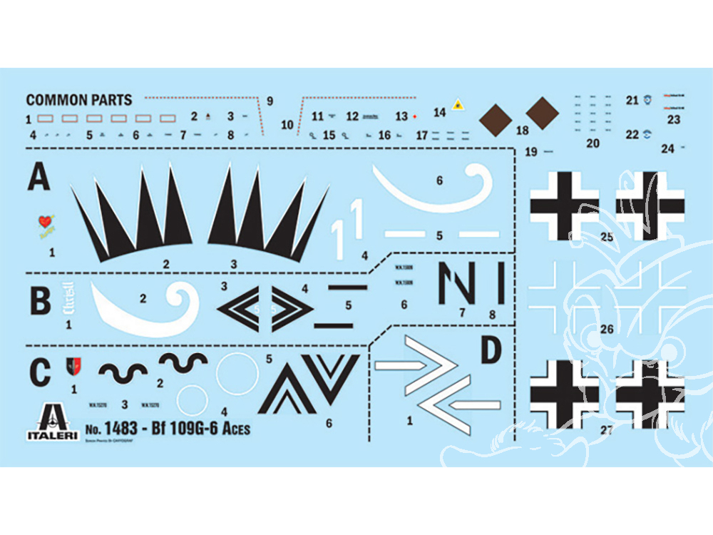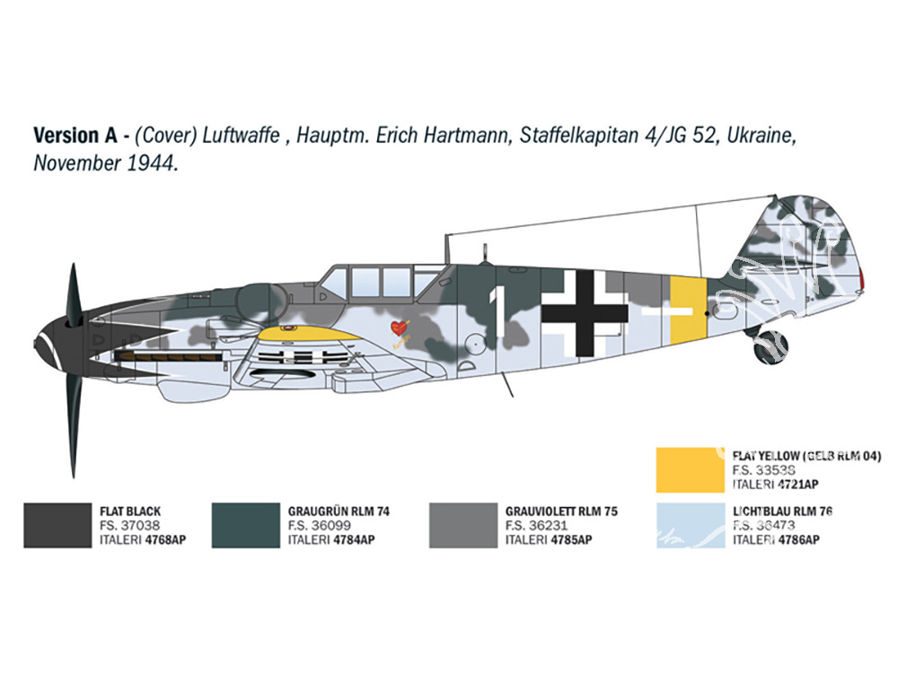 Decals per 4 versioni LUFTWAFFE ACES : Erich Hartmann, Hauptm. Gerhard Barkhorn, major Günther Rall, Obslt. Johannes Steinhoff.