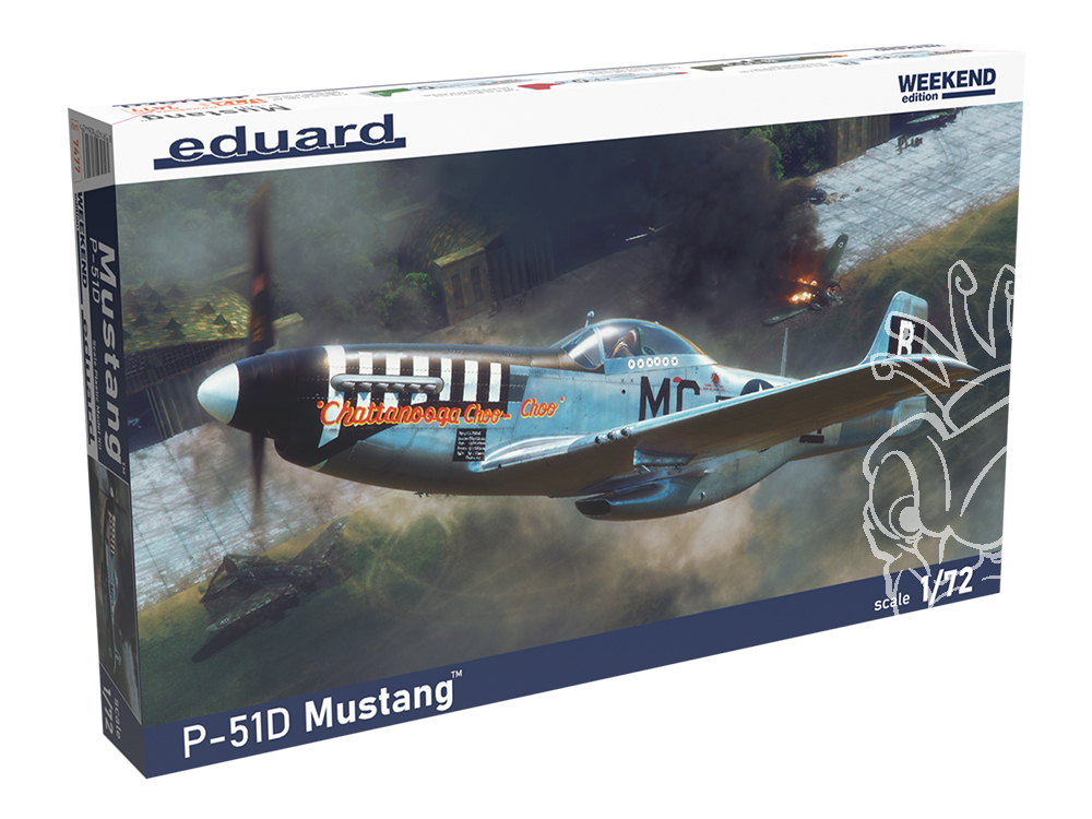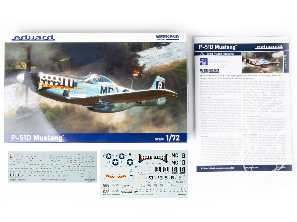 La version Weekend de la maquette du chasseur américain de la Seconde Guerre mondiale P-51D Mustang à l’échelle 1/72. Ce kit est dédié aux appareils équipés du carénage dorsal, appartenant aux 8th, 15th et 20th Fighter Group USAAF.