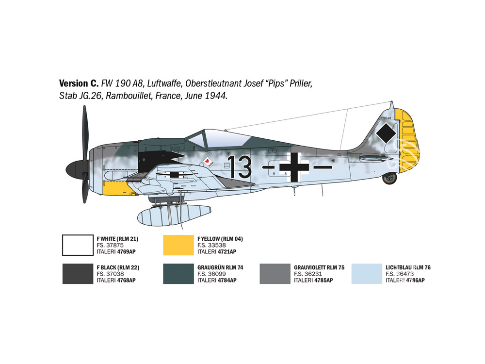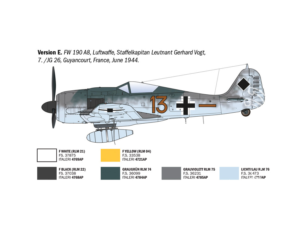 Decals pour 5 Versions: Luftwaffe ACES : Major. Maj. Heinz “Pritzl” Bär, Obstlt. Otto Kittel, Major Josef „Pips“ Priller, Leutnant Anton Rudolf Piffer, Leutnant Gerhard Vogt