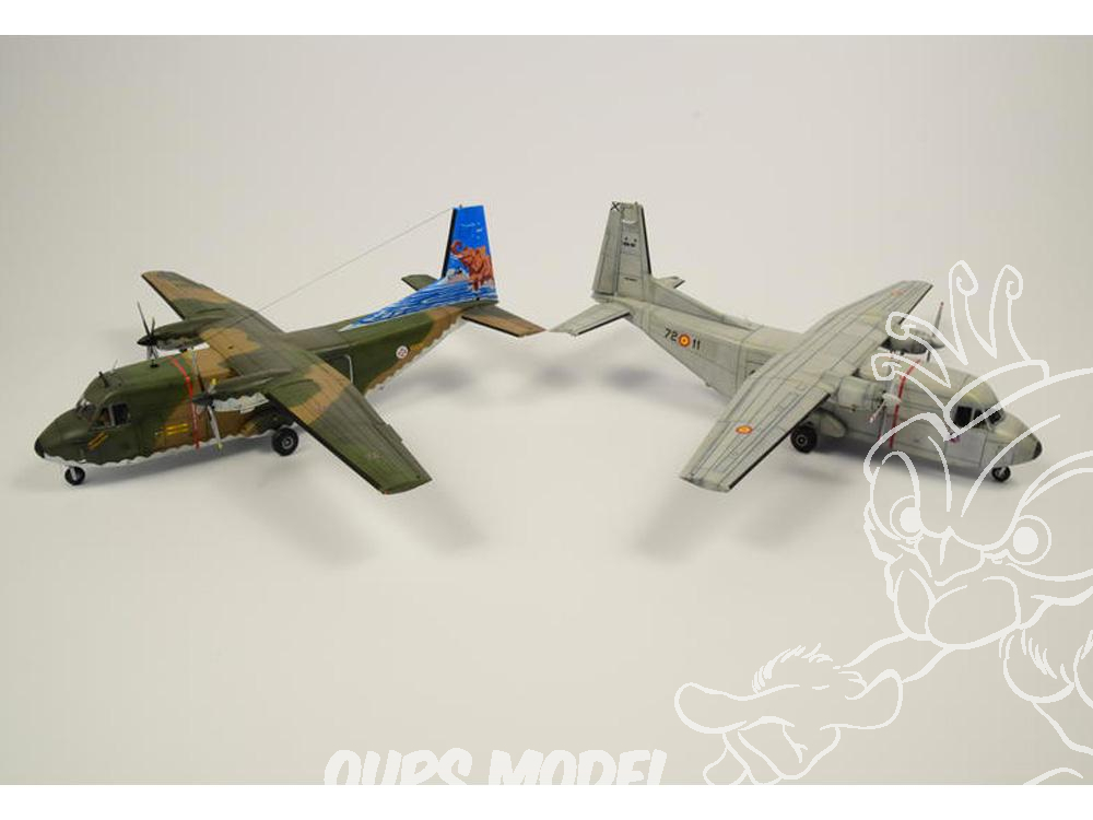 Le CASA C-212 a des parties divisées en cinq cadres de plastique gris et un cadre de pièces claires. L'édition limitée SH72376 CASA C-212-100 "Tail Art" propose deux très intéressantes machines de l'armée de l'air portugaise. Les deux avions sont décorés avec des dessins sur les surfaces verticales de la queue. Les décalques sont imprimés par l'italien Cartograf. Les moules sont les mêmes que le modèle SH72344.