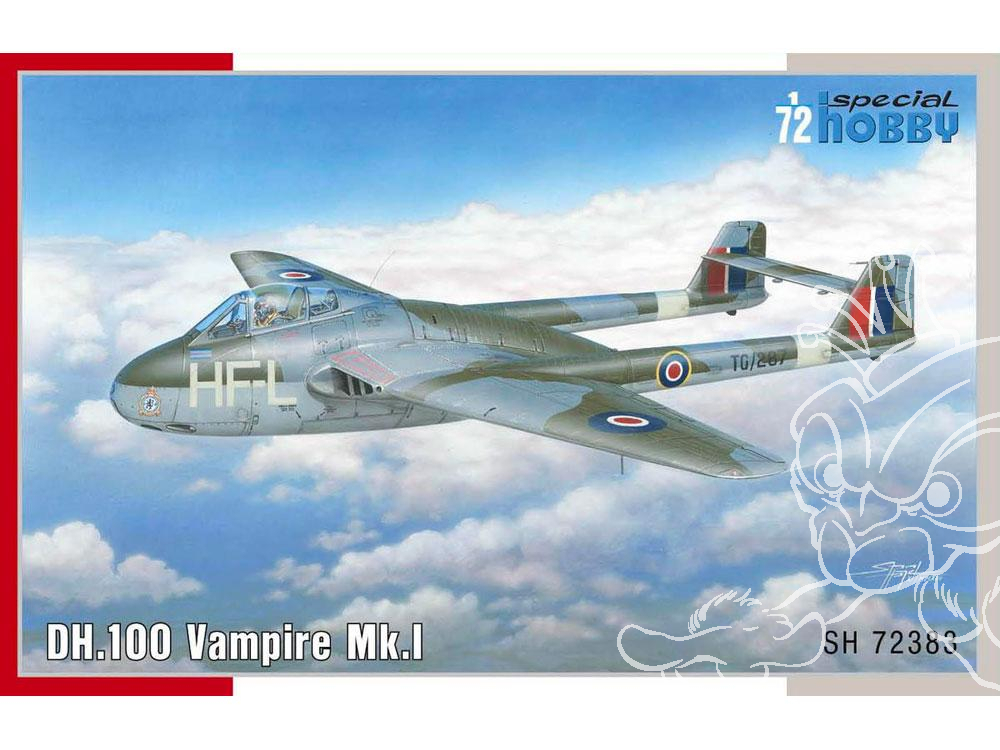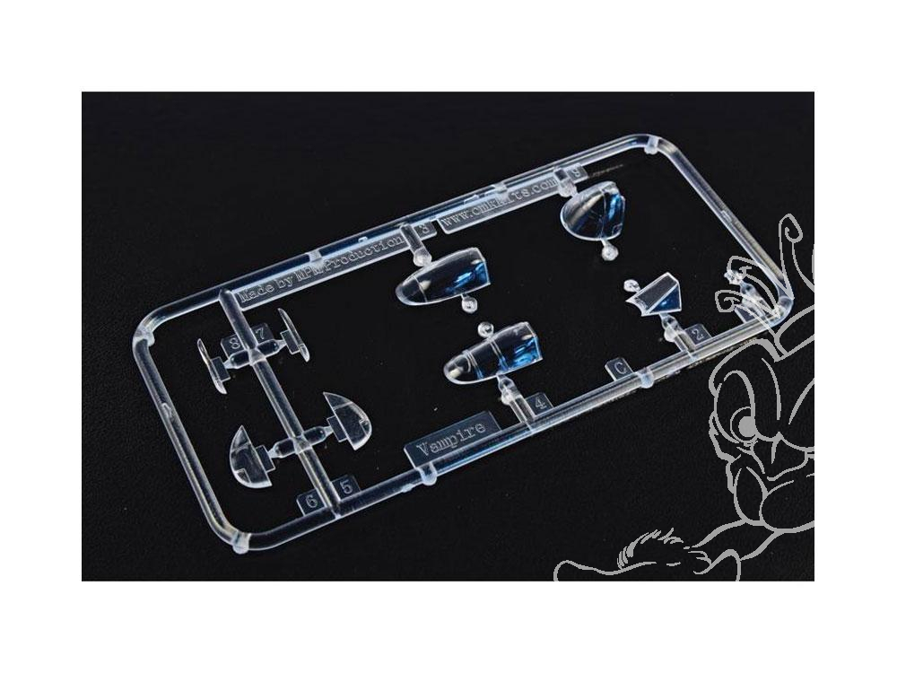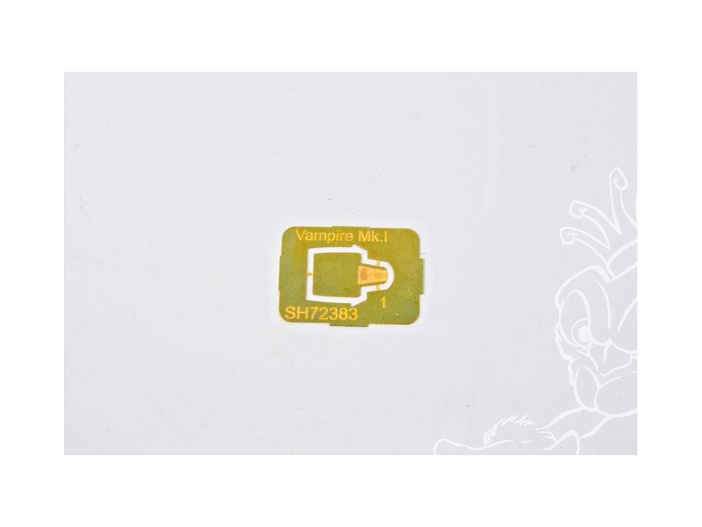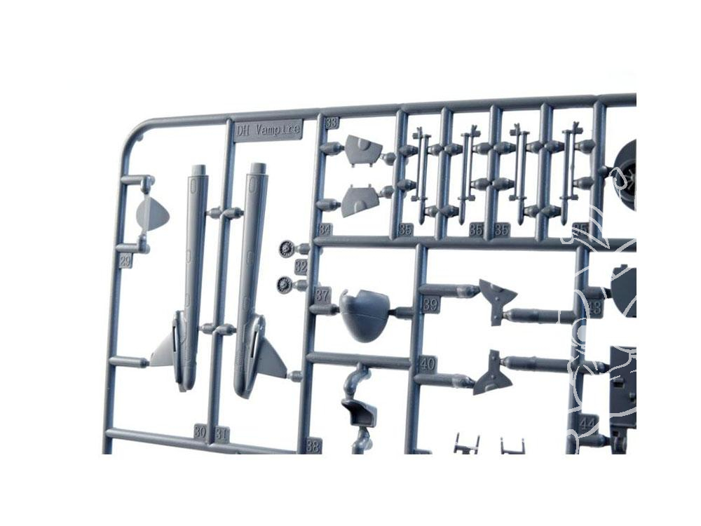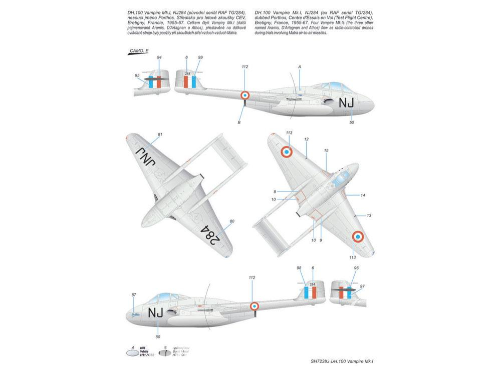 Les décalques et les instructions présentent trois appareils de la RAF, chacun avec un camouflage différent et d'autres caractéristiques, le premier moteur à réaction RAAF, le Vampire A74-I et le Vampire Mk.I Armée de 'l Air, du nom de Porthos.