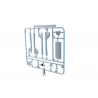 Les pièces sont divisées en trois cadres en plastique gris, complétés par deux cadres en parties claires et un plan de gravure. Dans un cadre de pièces transparentes, vous trouverez une cabine d’une version ultérieure et une cabine originale de la première version. Avec la forme de la cabine du matin, nous n'étions pas heureux et nous avons donc créé une nouvelle forme à partir de laquelle nous avons appuyé sur le deuxième cadre de pièces transparentes avec la cabine du matin de la forme correcte.