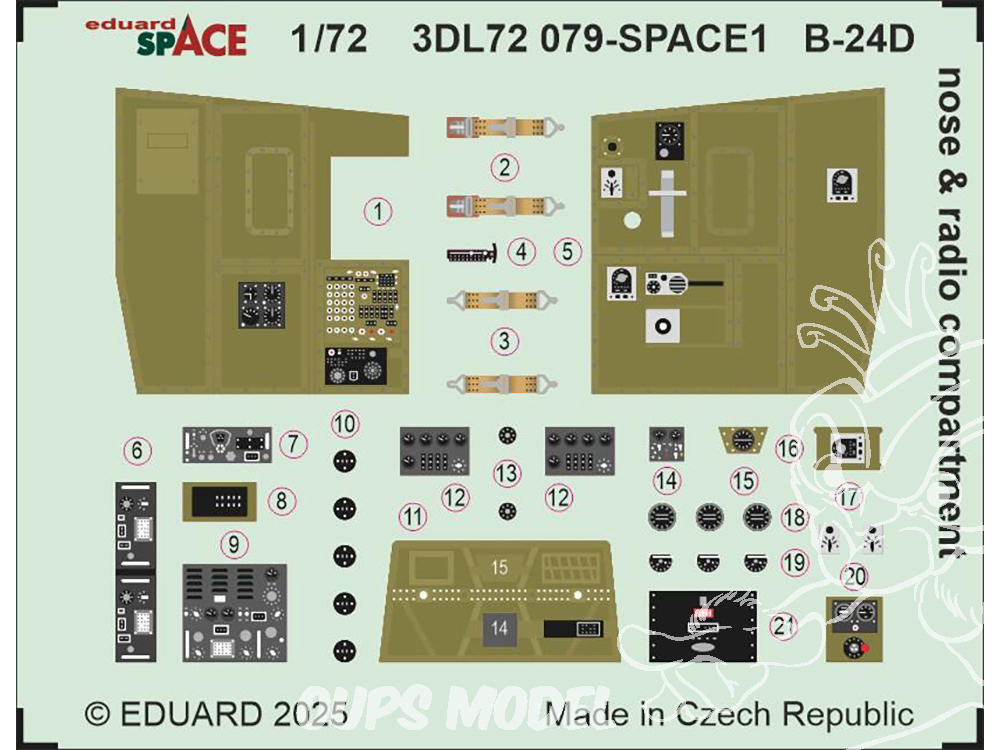 Eduard Space décalques 3D 3DL72079 B-24D Nez et compartiment radio Airfix 1/72