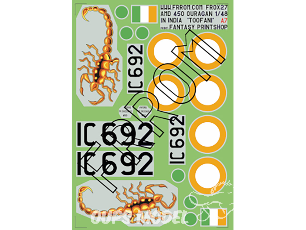 Frrom maquettes avions FR0X27 Décalques Ouragan India 1/48 th IC692, 2 versions 1/72