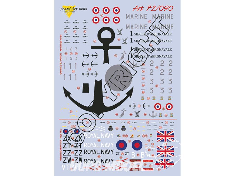 Decalques Model Art 72/090 Grumman E-2C Hawkeye et Westland SEA KING HC.4 Commando 1/72