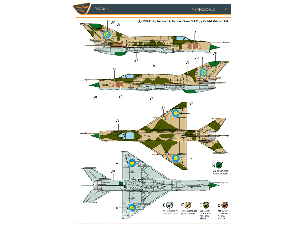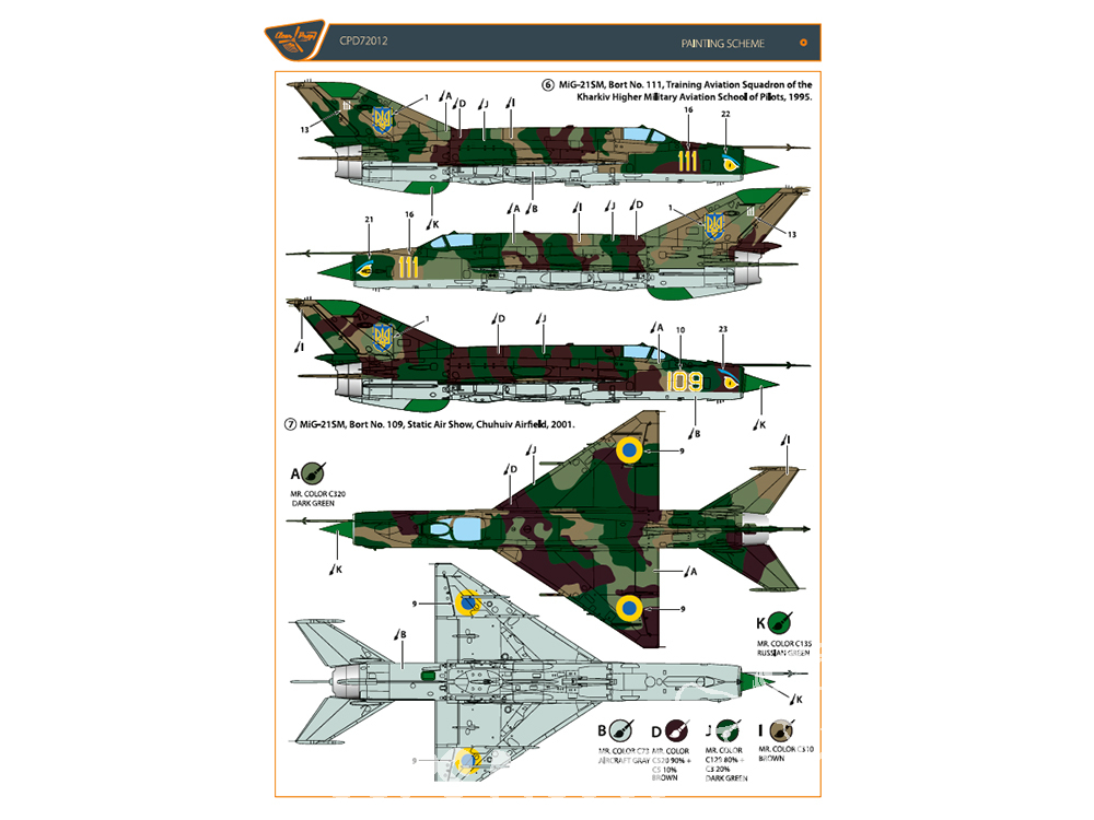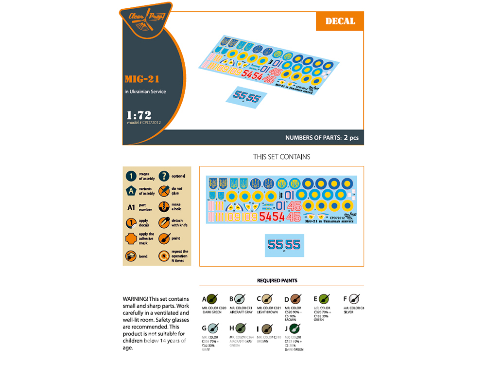 Clear Prop CPD72012 Decalques Mig-21 en service Ukrainien pour kits tous 1/72